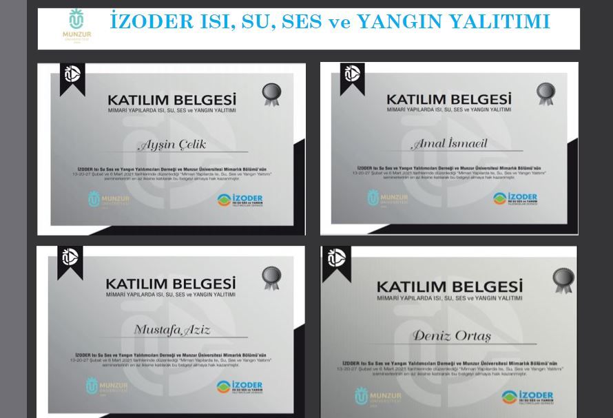 * Öğrencilerimizin Mimari Yapılarda Isı, Su, Ses ve Yangın Yalıtımı Webinarı Katılım Belgeleri |
