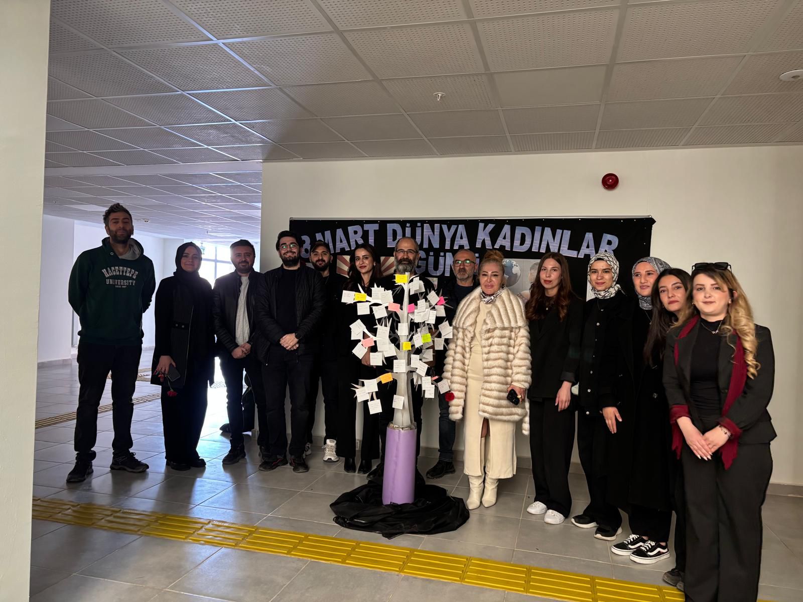 During the event, the board belonging to the Department of Social Work at the Faculty of Health Sciences was decorated with posters highlighting the meaning and importance of March 8. The awareness tree prepared by the Social Work Club was then decorated with words emphasizing the importance of March 8, and the event came to an end.