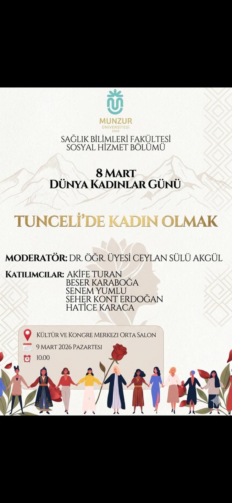 Munzur Üniversitesi Sağlık Bilimleri Fakültesi Sosyal Hizmet Bölümü tarafından düzenlenen "8 Mart Dünya Kadınlar Günü" etkinliği, büyük bir ilgiyle gerçekleştirildi.