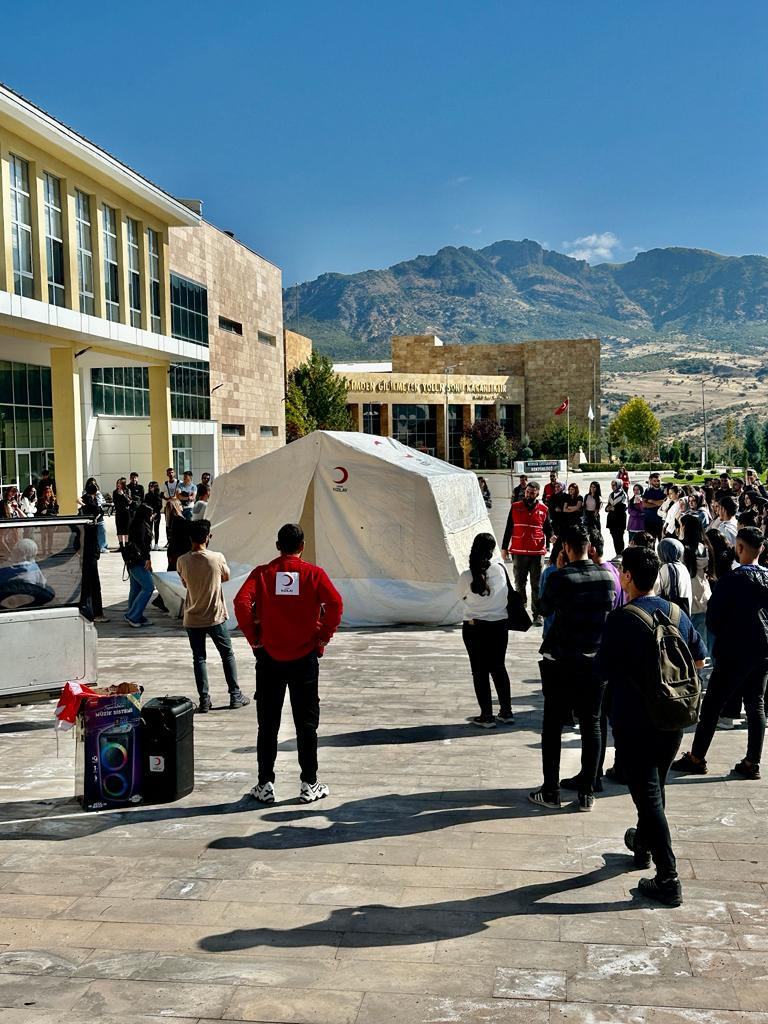 Türkiye Kızılay Derneği Afet Yönetimi ve İklim Değişikliği Genel Müdürlüğü üniversitemiz kongre ve kültür merkezinde 24 Ekim Salı günü saat 09.30’da toplumun afetlere karşı direncini artırmak, Türkiye afet yönetim sistemi hakkında bilgilendirme yapmak, afet kültürü oluşturmak amacıyla “Afet Eğitimi” etkinliğini gerçekleştirmiştir.