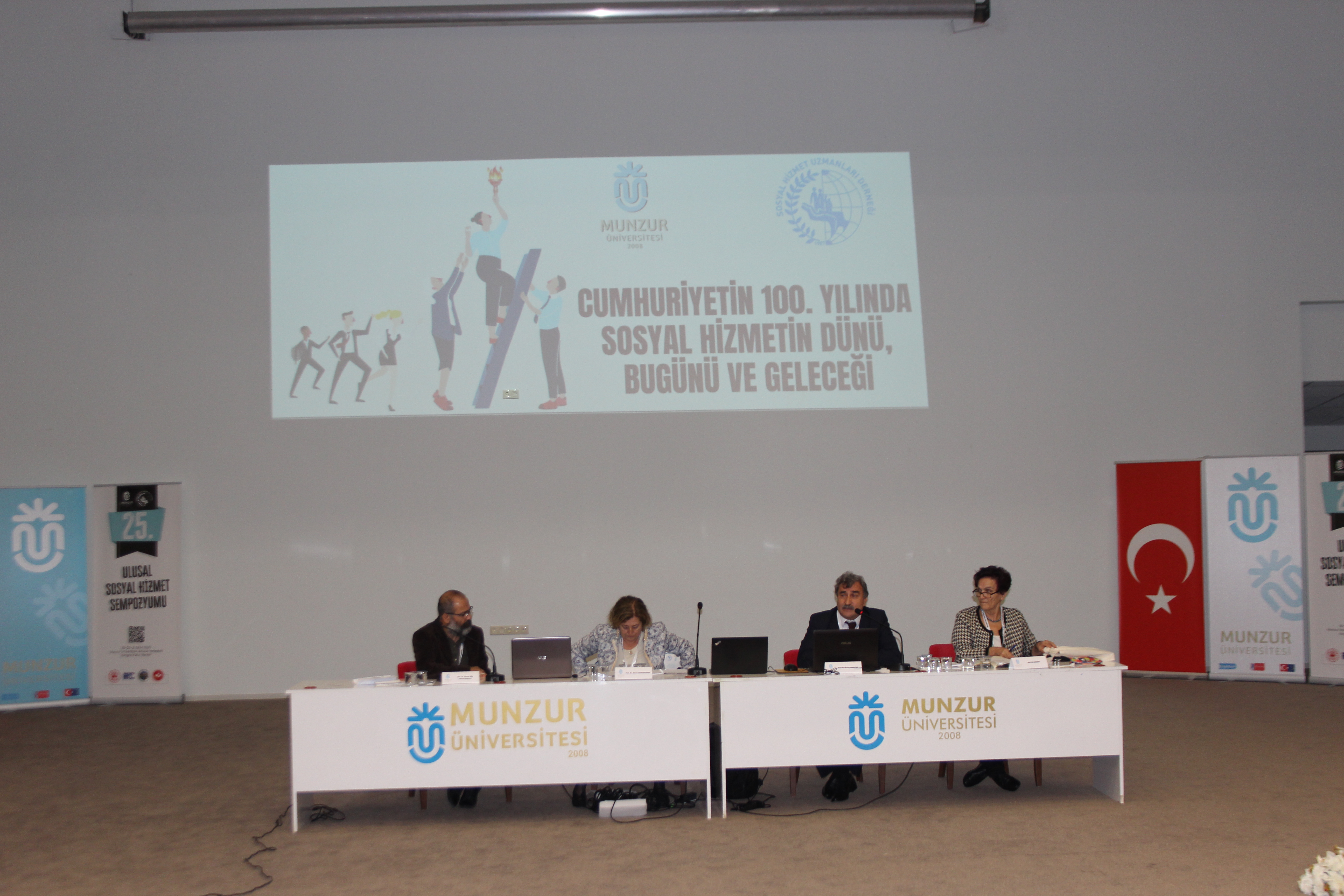 Sempozyum Cumhuriyetimizin 100. Yılında “Cumhuriyetimizin 100.Yılında Sosyal Hizmetin Dünü, Bugünü ve Geleceği” ana temasıyla, sosyal hizmet alanında dünü, bugünü ve geleceği buluşturarak sosyal hizmet alanına dair son gelişmeleri, araştırmaları ve uygulama örneklerini paylaşma fırsatı sunarak katılımcılara önemli bilgi ve deneyimler aktardı. Munzur Üniversitesi'nin ev sahipliği yaptığı bu etkinlik, bilimsel bilgiyi yaymanın yanı sıra sosyal hizmet alanındaki işbirliği ve iletişimi güçlendirmeye de katkı sağladı. Sempozyuma ulusal ve uluslararası düzeyde sosyal hizmet disiplininin alandaki en güçlü isimlerinden olan Prof. Dr. Kasım KARATAŞ, Prof. Dr. Özlem CANKURTARAN, Prof. Dr. Kamil ALPTEKİN, Sosyal Hizmet Uzmanı Gül ERDOST ve Sosyal Hizmet Uzmanı S. Sedat TÜRKERİ ve Uluslararası Sosyal Hizmet Uzmanları Federasyonu Avrupa (IFSW EUROPE) Başkanı Ana RADULESCU ve Birleşmiş Milletlerde IFSW Europe temsilcisi Herbert PAULISCHIN sempozyumun özel davetlileri olarak katılım sağlayarak sempozyum teması doğrultusunda konuşma gerçekleştirmiştir. Sempozyum kapsamında alanının uzman isimleri Prof. Dr. Özlem CANKURTARAN, Prof. Dr. Reyhan ATASÜ TOPCUOĞLU,  Doç. Dr. Figen PASLI, Doç. Dr. Gülin EVİNÇ, Dr. Uğur ÖZDEMİR, Psikodramist SHU Hülya TÜRK ve Psikodramist Tülin KUŞGÖZOĞLU alanda çalışan meslek elemanlarına ve öğrencilerimize atölyeler gerçekleştirmişlerdir. Bunların yanında Prof. Dr. Uğur TEKİN ve Doç. Dr. Neşe ŞAHİN TAŞĞIN tarafından “Sosyal Hizmetleri Yeniden Düşünmek” ve Emekli öğretim üyesi Yrd. Doç. Dr. Filiz DEMİRÖZ’ ün başkanlığında ve SHUDER İstanbul Şube Başkanı SHU İkram DOĞAN, İzmir Büyükşehir Belediyesinden SHU Tufan Fırat GÖKSEL, Aile  ve Sosyal Hizmetler Bakanlığından Suzan OKTAY EROL, Aile ve Sosyal Hizmetler Bakanlığı Suriye El-Bab Bölge Koordinatörü SHU Sinan TURUNÇ, World Human Relief (WHR) Derneğinden Sait ASLAN ve Elif ÖZBAKAN tarafından 6 Şubat Kahramanmaraş depremi özelinde “Neredeydik Nereye Gidiyoruz Cumhuriyetin 100. Yılında Afetlerde Sosyal Hizmet Pratiği” adlı paneller gerçekleştirilmiştir.