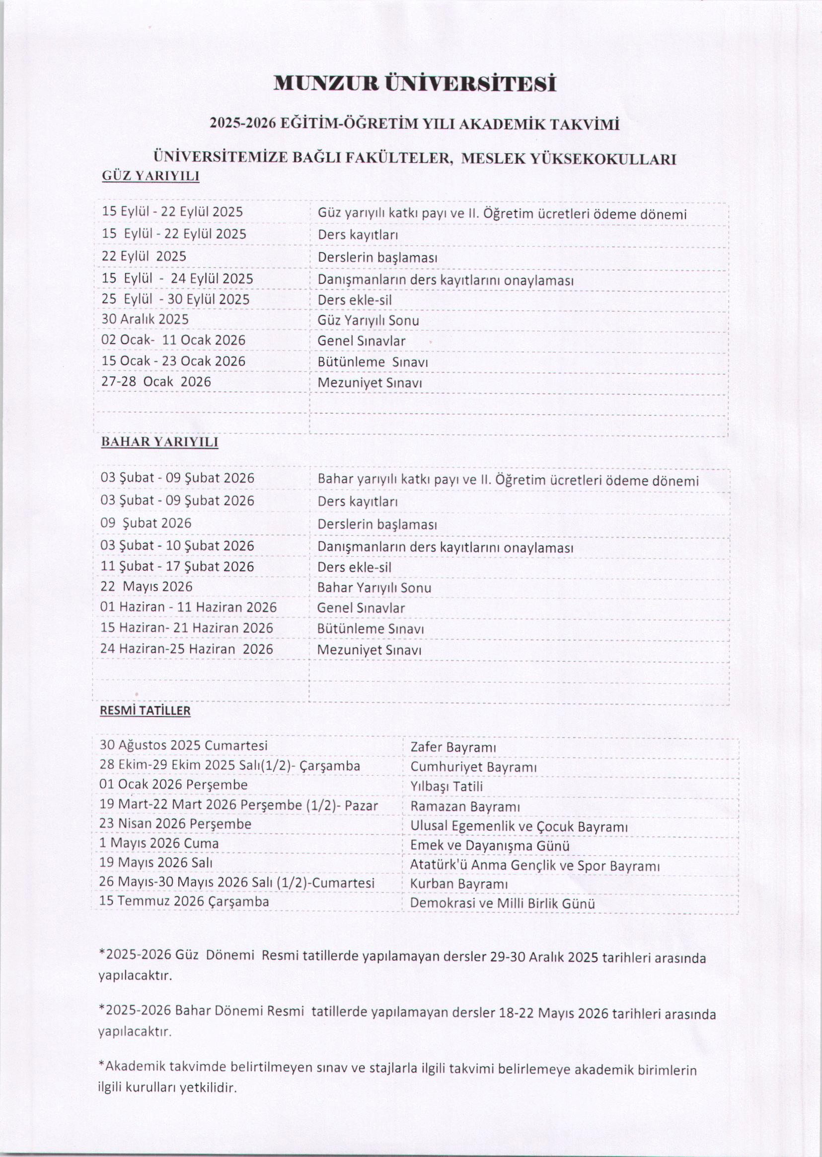 AKADEMİK TAKVİM