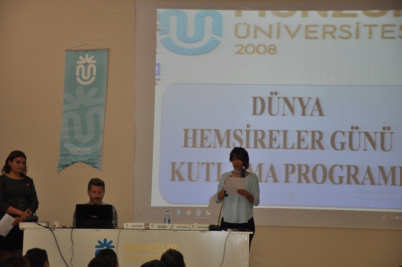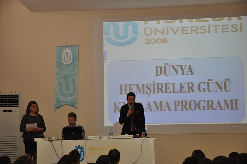 Her yıl 12-18 Mayıs tarihleri arasında kutlanan Hemşirelik Haftası dolayısı ile Üniversitemizde de bir kutlama programı düzenlendi. Tunceli Meslek Yüksekokulu Konferans Salonu’nda gerçekleşen ve Sağlık Yüksekokulu tarafından düzenlenen programa Rektörümüz Prof. Dr. Ubeyde İPEK, Tunceli İl Sağlık Müdürü Dr. Sercan ÖZAYDIN ve Sağlık Yüksekokulu akademisyenleri ile öğrencileri katıldı. Saygı duruşu ve İstiklal Marşı’nın ardından Rektör İPEK, İl Sağlık Müdürü Sercan ÖZAYDIN, Yüksekokul Müdürü Prof. Dr. Fulya BENZER ve Hemşirelik Bölüm Başkanı Doç. Dr. Gülnaz KARATAY etkinlikle ilgili konuşma yaptılar. Konuşmaların ardından son sınıf öğrencileri tarafından hazırlanan çeşitli konulardaki sunumlara da yer verildi.