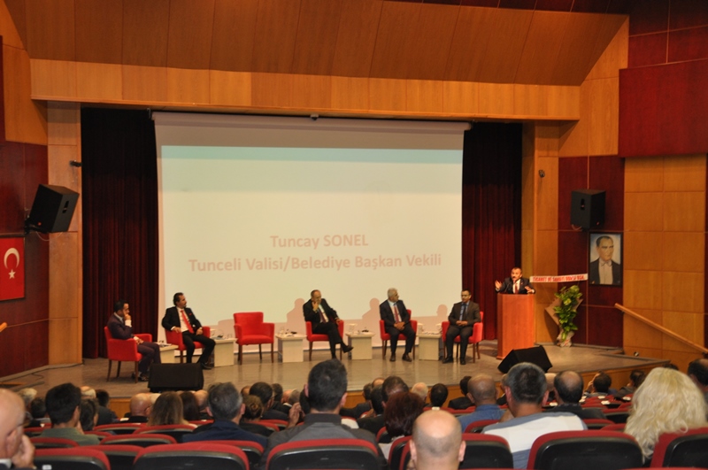 Panel moderatörü Rektörümüz Prof. Dr. Ubeyde İpek, Üniversitemiz hakkında bilgilendirme yaptı. Panelistler Munzur Teknoloji Transfer Ofisi Uygulama ve Araştırma Merkez Müdürü Dr. Öğr. Üyesi Ekrem Akbulut, Teknoloji Transfer Ofisi faaliyetleri ve Üniversite sanayi etkileşiminde yapılanlar hakkında bilgiler verdi. İZSİAD Yönetim Kurulu Başkanı Hasan Küçükkurt ‘Bölgesel İşbirliği Olanakları’, İZSİAD Yönetim Kurulu Üyesi Hüseyin Cengiz ‘Girişimcilik’, Tunceli Ticaret ve Sanayi Odası Başkanı Zeynel Açıkgöz ‘Tunceli ili Sanayi Altyapısı’, Fırat Kalkınma Ajansı Tunceli Yatırım Destek Ofisi Koordinatörü Tunceli ili Yatırım Fırsatları ve son olarak Tunceli Valisi ve Belediye Başkan Vekili Tuncay Sonel yatırımcılara Tunceli ili özelinde sağlanan destekler konularında bilgi verdi.