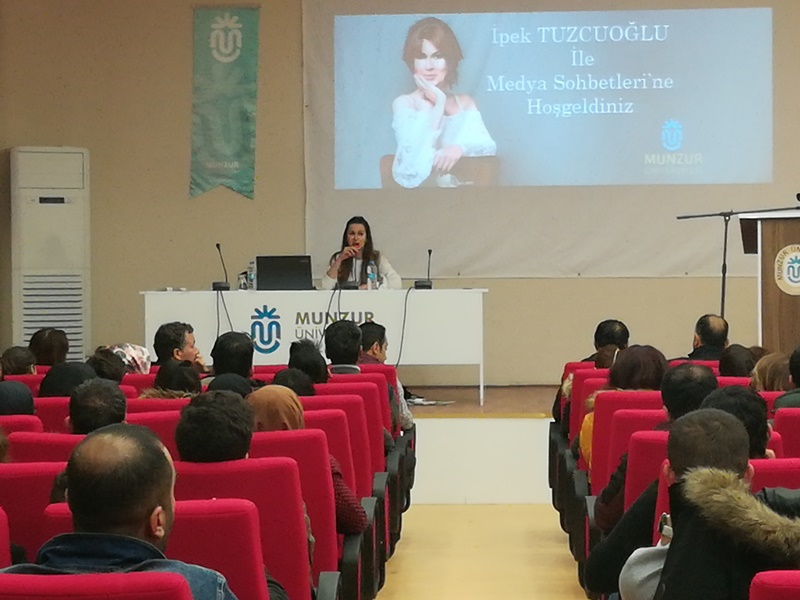 Öğrencilerle yaşamından ilginç kesitler paylaşan İpek TUZCUOĞLU, Tunceli’de ve Munzur Üniversitesi’nde olmaktan çok mutlu olduğunu dile getirdi.Öğrencilerin sorularını samimi bir şekilde yanıtlayan TUZCUOĞLU, öğrenciler için çok yararlı olduğunu düşündüğümüz söyleşi sonunda öğrencilerle hatıra fotoğrafı çektirdi.