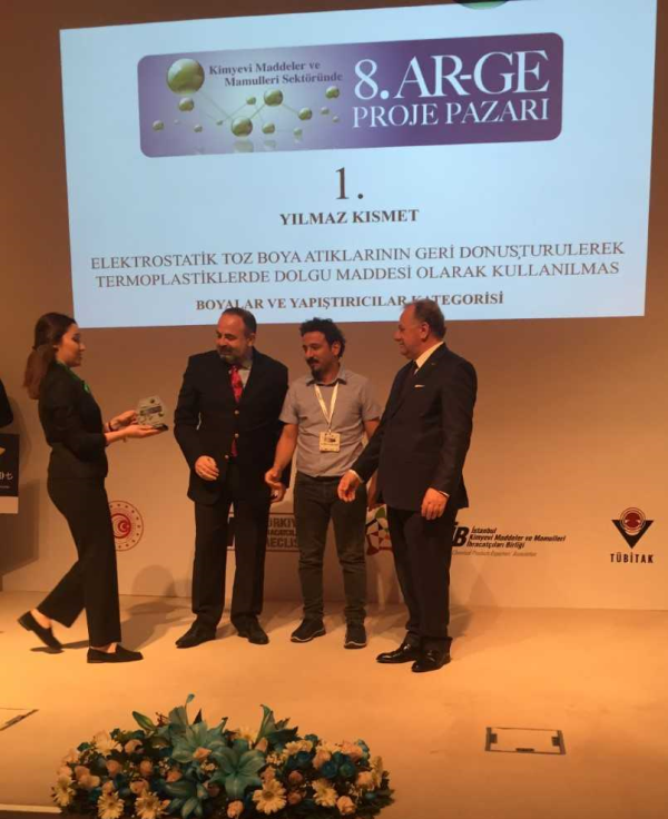 İstanbul Kimyevi Maddeler ve İhracatçıları Birliği (İKMİB) tarafından düzenlenen 8. AR-GE Proje Pazarı'nda "Boyalar ve Yapıştırıcılar" kategorisinde "Elektrostatik Toz Boya Atıklarının Geri Dönüştürülerek Termoplastiklerde Dolgu Maddesi Olarak Kullanılması" başlıklı çalışması ile birincilik ödülüne layık görülen Üniversitemiz Makine Mühendisliği Bölümü Öğretim Üyesi Dr. Öğr. Üyesi Yılmaz Kısmet'i tebrik ediyor, başarılarının devamını diliyorum.
