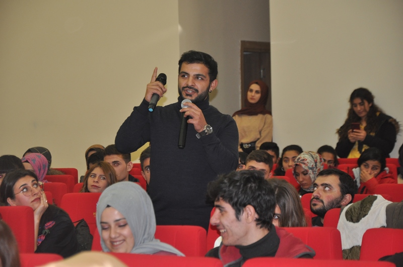 Prof. Dr. Fuat SEZGİN Konferans Salonu’nda 2 Aralık 2019 tarihinde gerçekleşen söyleşiye Üniversitemiz akademisyenleri ve öğrencilerinin yanı sıra genç yazarın ailesi de katıldı.
