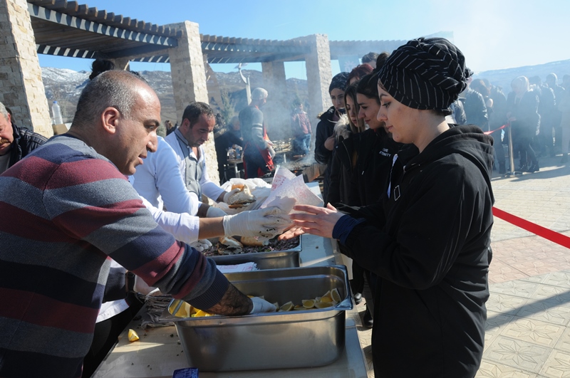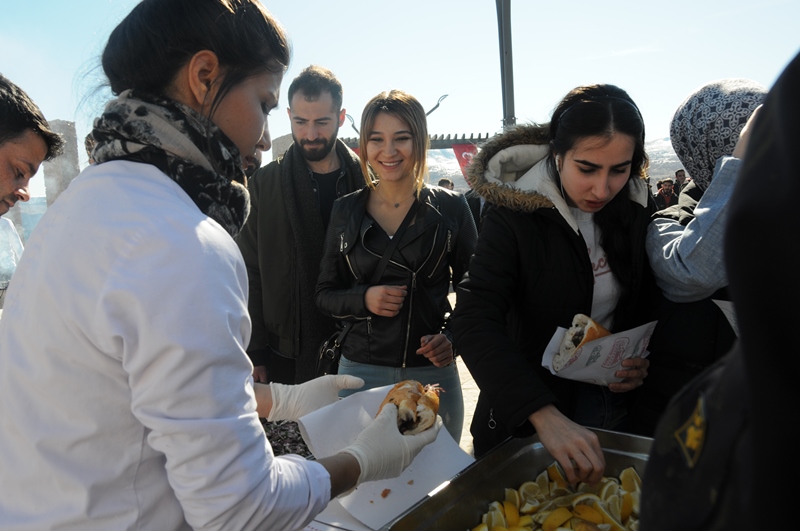 Büyük bir coşku ile gerçekleştirilen etkinlikte 550 kilogram balık hazırlanarak, uzun kuyruklar oluşturan 2500 kişilik katılımcılara ikram edildi.