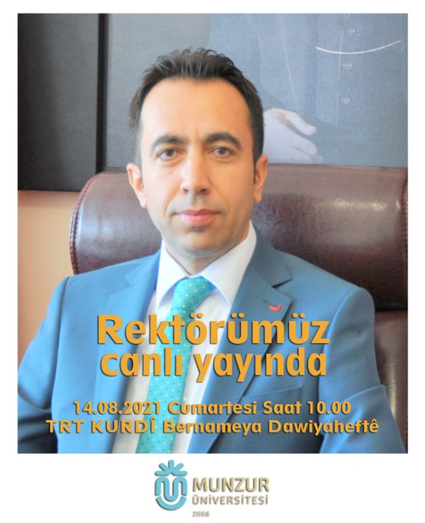 Rektörümüz Prof. Dr. Ubeyde İPEK, 14 Ağustos 2021 Cumartesi günü saat 10.00'da TRT KÜRDÎ' de yayınlanacak olan "Bernameya Daviyaheftê" programının canlı yayın konuğu olacak.
