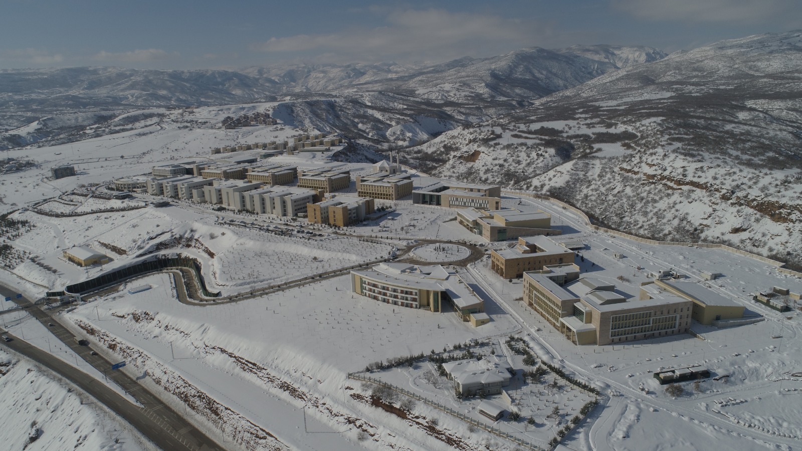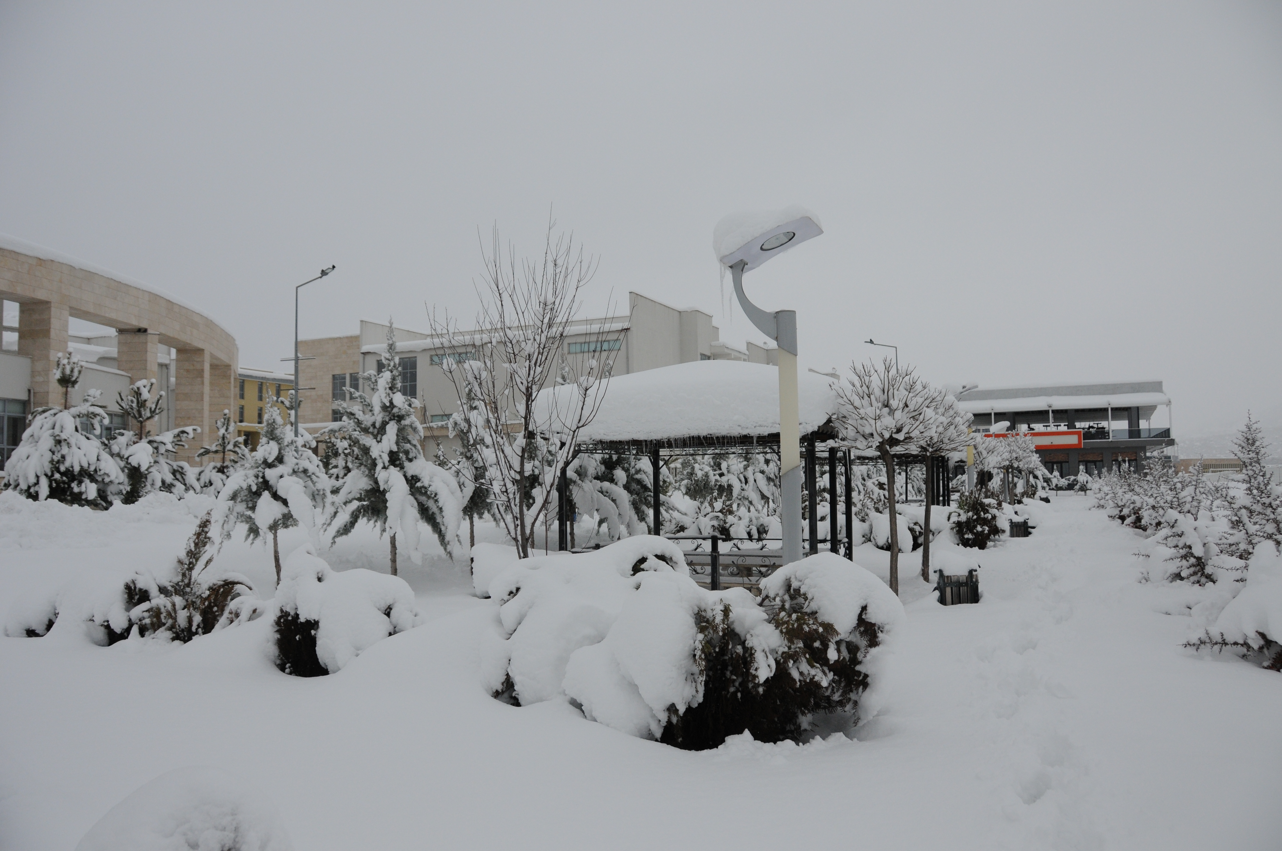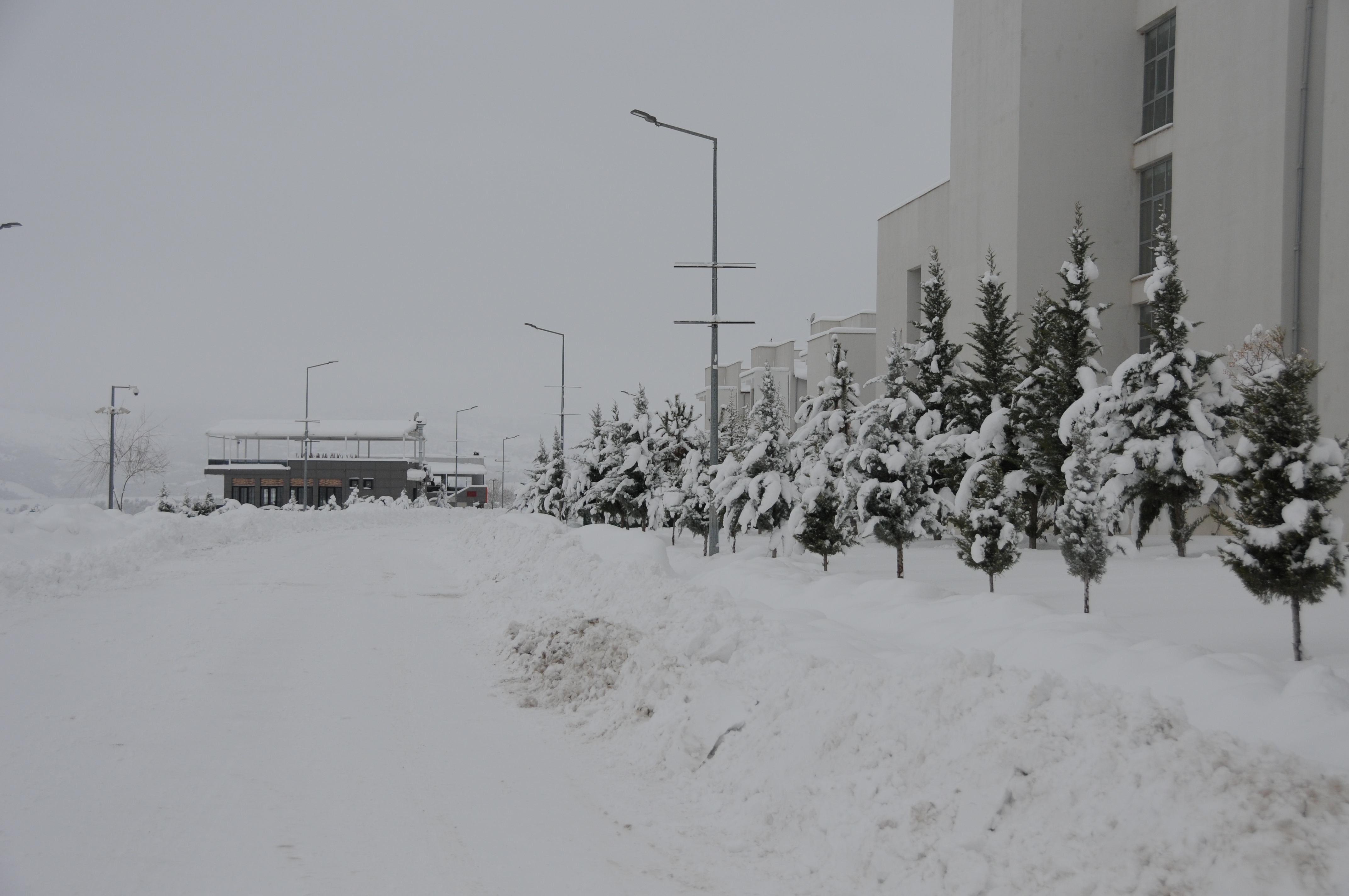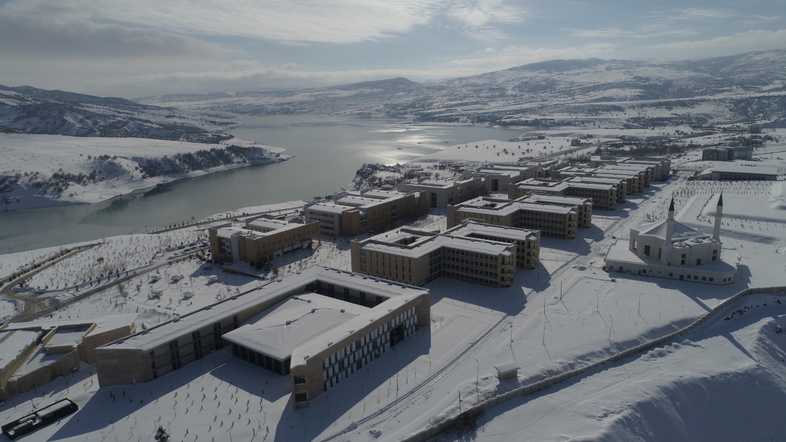 Eşsiz baraj manzarasına sahip Aktuluk Kampüsümüz, bölgemizde yaklaşık iki haftadan beri devam eden yoğun kar yağışı ile birlikte beyaza büründü. Kar yağışı nedeniyle zaman zaman güçlüklerin yaşandığı kampüsümüzde personellerimiz bir yandan karın tadını çıkarırken diğer yandan ulaşımın aksamaması için çalışmalar özveriyle sürdürülüyor. Bu kış, ziyaretçilerine seyir zevki sunmaya devam eden baraj manzaralı kampüsümüz, tatilde olan öğrencilerimiz için havadan ve değişik açılardan fotoğraflandı.