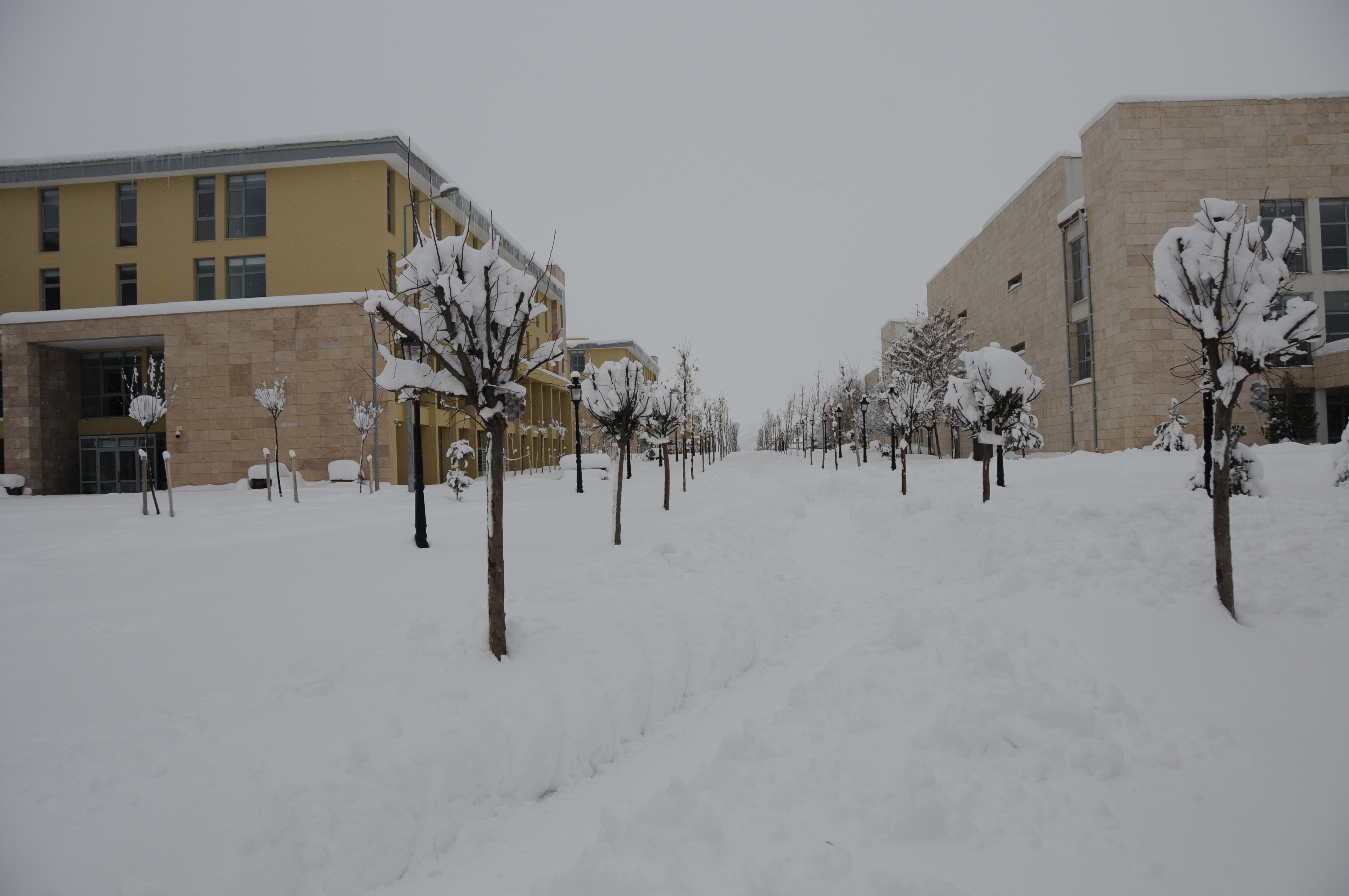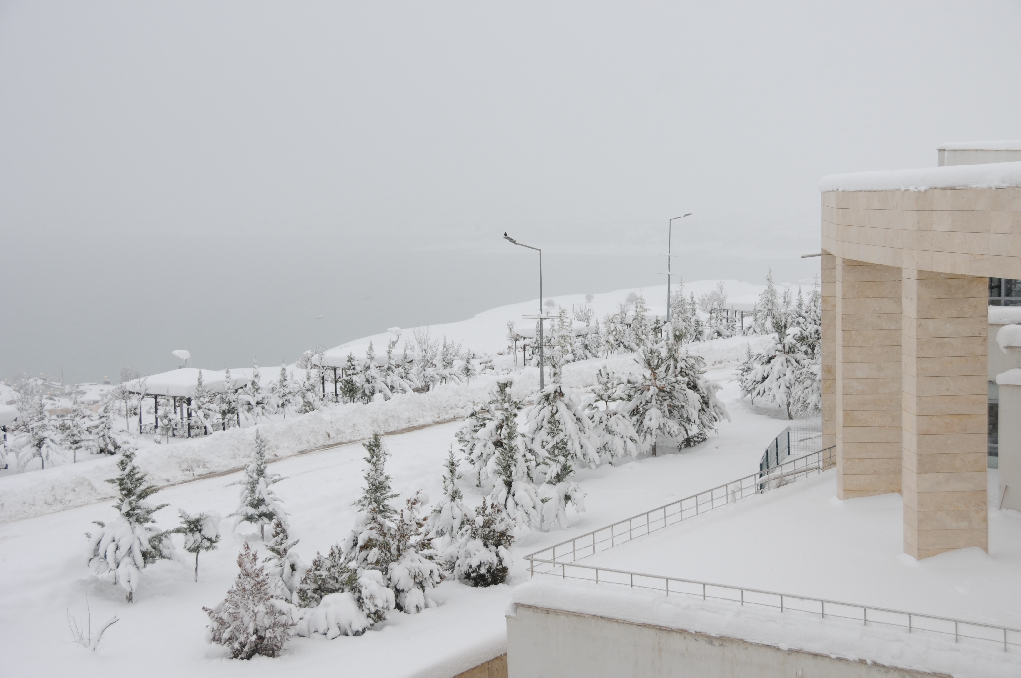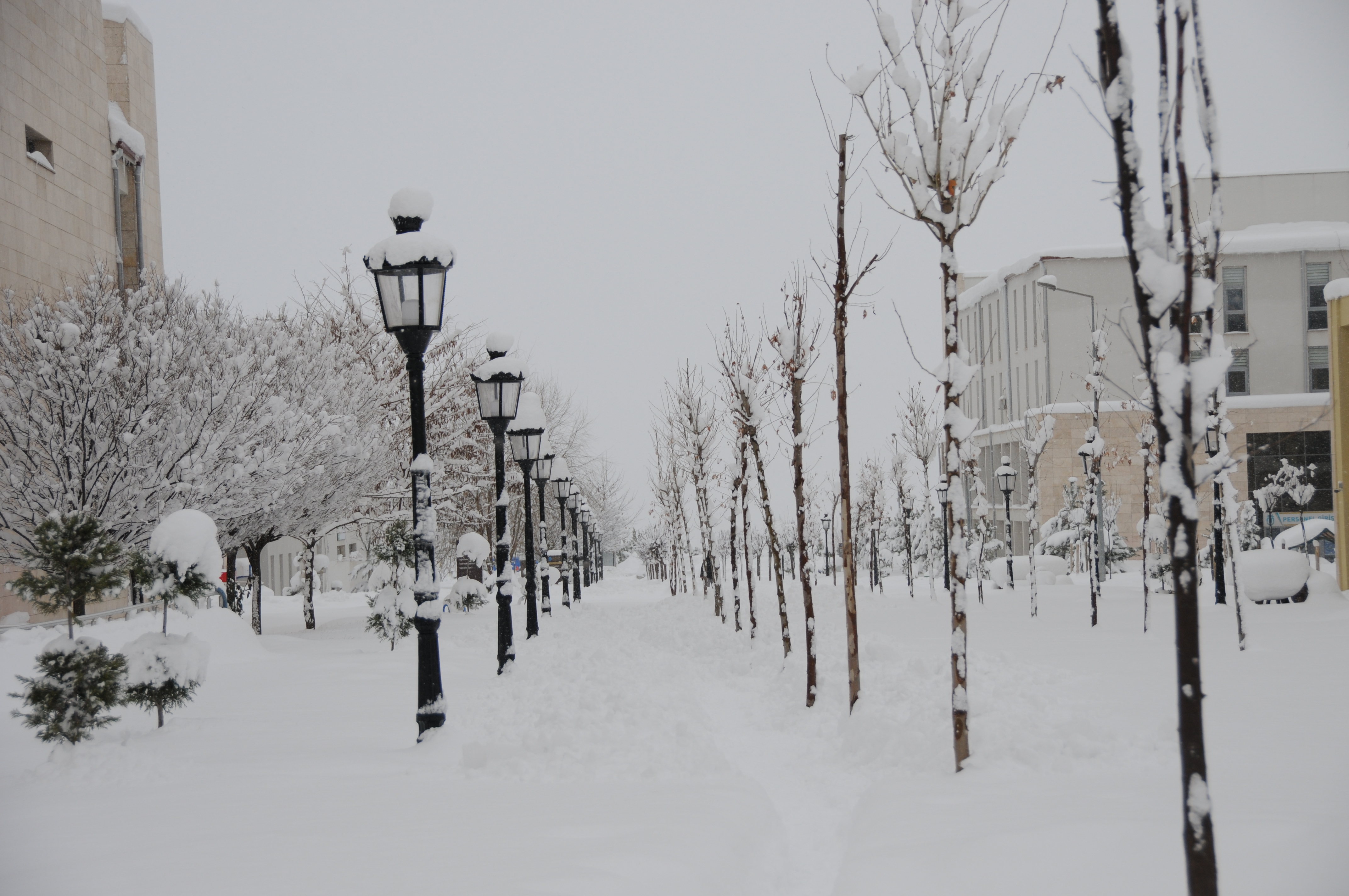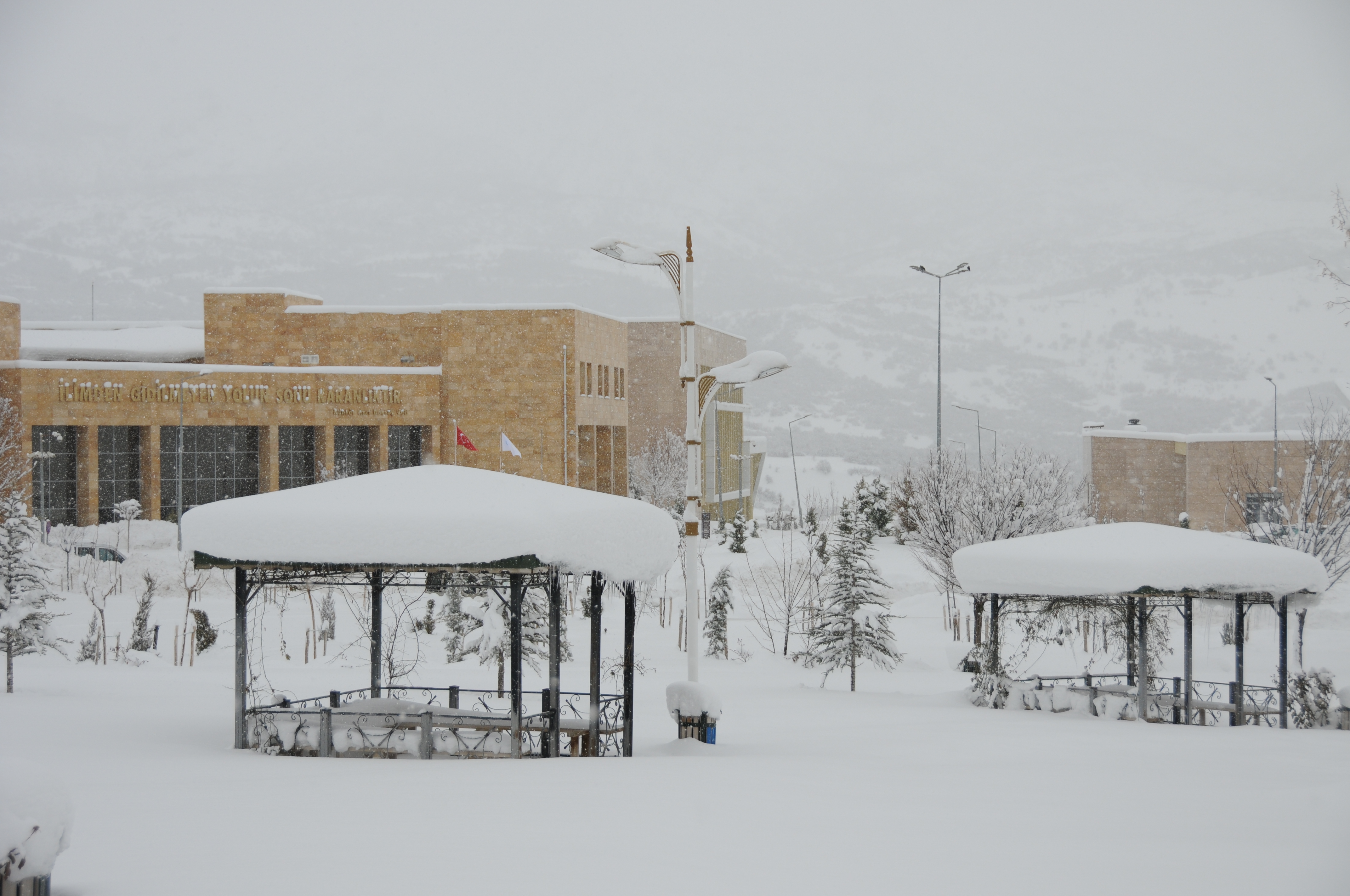 Eşsiz baraj manzarasına sahip Aktuluk Kampüsümüz, bölgemizde yaklaşık iki haftadan beri devam eden yoğun kar yağışı ile birlikte beyaza büründü. Kar yağışı nedeniyle zaman zaman güçlüklerin yaşandığı kampüsümüzde personellerimiz bir yandan karın tadını çıkarırken diğer yandan ulaşımın aksamaması için çalışmalar özveriyle sürdürülüyor. Bu kış, ziyaretçilerine seyir zevki sunmaya devam eden baraj manzaralı kampüsümüz, tatilde olan öğrencilerimiz için havadan ve değişik açılardan fotoğraflandı.