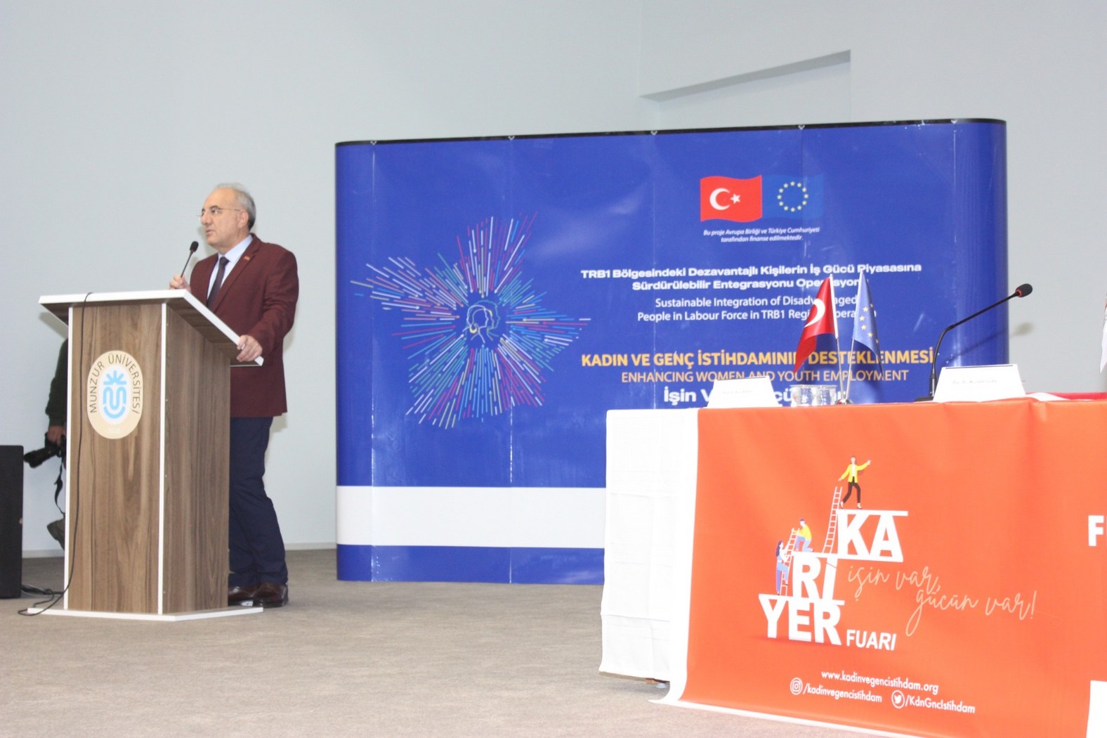 Munzur Üniversitesi: Türkiye Cumhuriyeti ve Avrupa Birliği ve tarafından finanse edilen 4. Kariyer Fuarı Munzur Üniversitesi ev sahipliğinde gerçekleştirildi. Munzur Üniversitesi ve Fırat Kalkınma Ajansı işbirliğinde düzenlenen Kariyer Fuarı Munzur Üniversitesi Kongre ve Kültür Merkezi’nde yapıldı. Bu fuarlar kadın ve genç istihdamının desteklenmesi amacıyla ‘TRB1 bölgesindeki dezavantajlı kişilerin iş gücü piyasasına sürdürülebilir entegrasyonu operasyonu’’ başlığı altında yürütülmektedir.