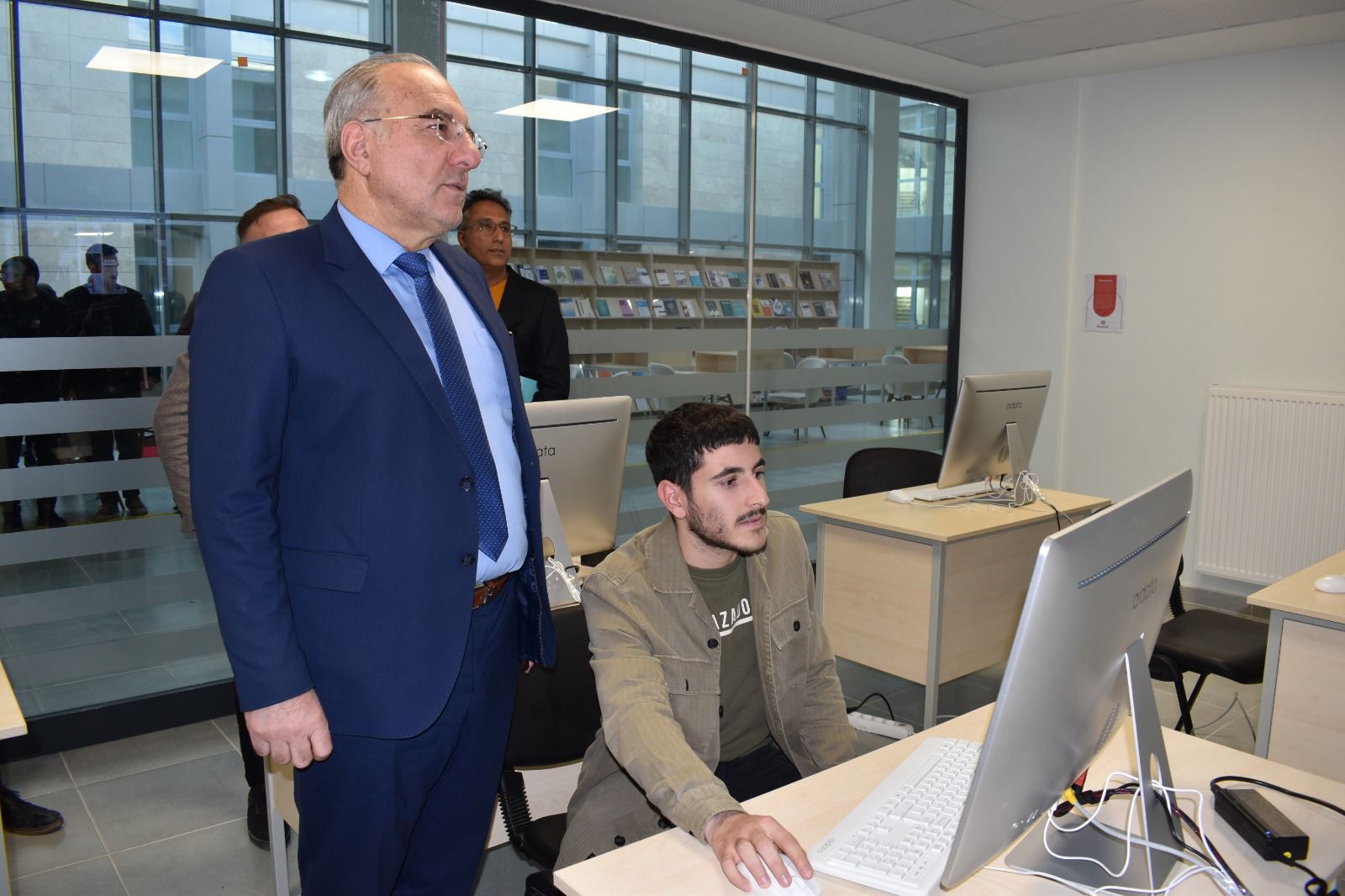 Üniversite Kütüphanesinde "Kısıtlar Kuramı+Kodlama" şeklinde görselleştirme içeren bilişim üniteleri öğrencilerin hizmetine sunuldu. Dijital çağa uygun görselleştirme içeren bilişim stüdyoları büyük merak uyandırdı.