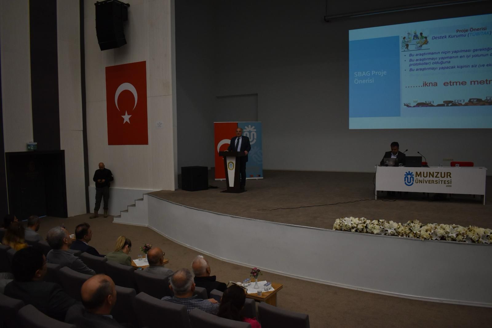 Munzur Üniversitesi 17-18 Nisan 2024 tarihleri arasında Kongre Kültür Merkezinde ‘TÜBİTAK Projesi Hazırlama Eğitimi’ programı düzenlendi. Eğitimde, TÜBİTAK tarafından desteklenen proje türleri, proje hazırlama aşamaları ve proje hazırlamada sağlanacak danışmanlık faaliyetlerine ilişkin bilgi verilirken, dikkat edilmesi gereken hususlar üzerinde duruldu. TÜBİTAK Projesinin sunumlarında; Kamu Araştırmaları Destek Grubu adına Rektörümüz Prof. Dr. Kenan PEKER konuştu.