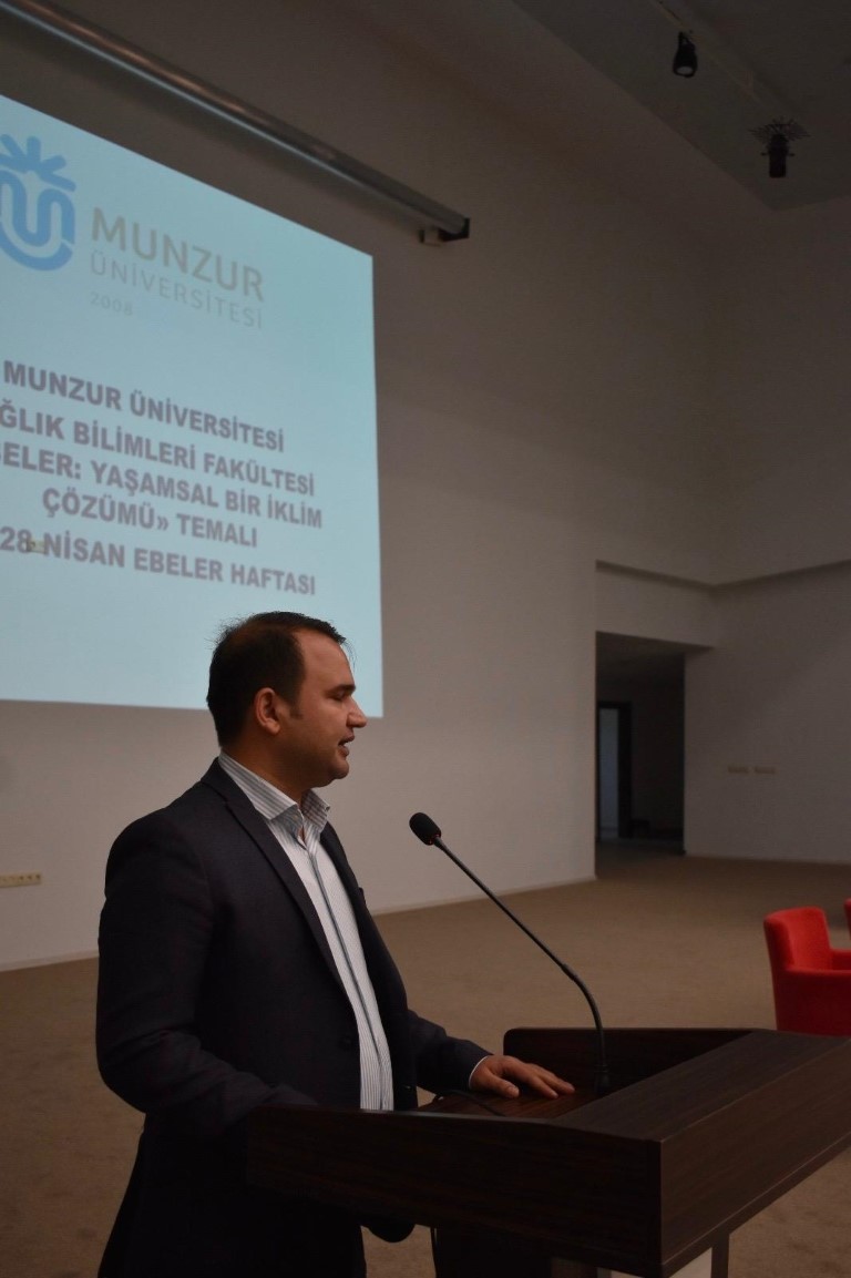 Etkinlik, Munzur Üniversitesi Rektör Yardımcıları Prof. Dr. Mustafa Taner ŞENGÜN açılış konuşmasında ebelerin önemine vurgu yaparak kutsal mesleği yapan ebelerin ebeler haftasını kutladı. Sağlık Bilimleri Fakültesi Dekan V. Prof. Dr. Ülkü ÖZBEY yaptığı açılış konuşmasında Sağlık Bilimleri Fakültesi’nin geçmişten günümüze faaliyetlerinden bahsederek, M.Ö. 4000 yıllarında, Sümerler zamanından başlayan ebelik mesleğini anlattı. Ebelik mesleğinin dönüşümünde rol oynayan faktörler ve bu meslekte günümüze kadar olan gelişmeler hakkında bilgiler verdi. Güncel “Ebelik” tanımı ile devam eden konuşmasında ülkemizdeki Ebelik eğitimi ve görev alanları ile ilgili konulara değindi. “En güzel tokat ebe şaplağıdır, hayat kazandırır” diyerek ebeleri ve ebelik mesleğini öven Sn. ÖZBEY, ebeler haftası kutlama mesajını ile konuşmasını sonlandırdı. Ebelik Bölüm Başkan V. Dr. Öğr. Üyesi Akgün YEŞİLTEPE yaptığı açılış konuşmasında günün anlam ve önemine değindi ve ebeler haftası kutlama mesajını iletti. İl Sağlık Müdür Yardımcısı Uzm Dr. Hakkı AKTAŞ’ın açılış konuşmalarında da sağlık bakım hizmetlerinin kıymetli ekip üyelerinin hizmetleri ve önemine değinerek ebeler haftası kutlama mesajları ile konuşmasını sonlandırdı.