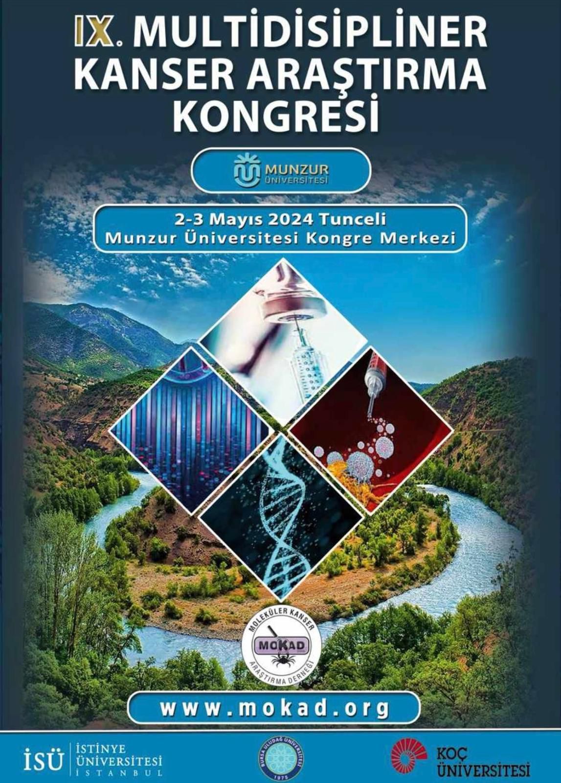 Moleküler Kanser Araştırma Derneği (MOKAD) tarafından dokuzuncusu düzenlenen IX. Multidisipliner Kanser Araştırma Kongresi, 2-3 Mayıs 2024 tarihlerinde Munzur Üniversitesinin ev sahipliğinde gerçekleştirildi. Kongre, Munzur Üniversitesi Kongre ve Kültür Merkezinde Öğr. Gör. Dr. Aziz ERDOĞAN ve Tunceli Güzel Sanatlar Lisesi Müzik Öğretmeni Eser GÜNDÜZ'ün deyişleriyle başladı.