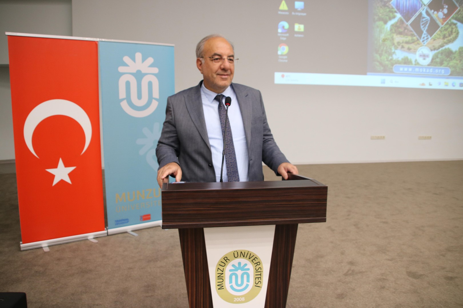 Kürsüye davet edilen MOKAD Başkanı ve İstinye Üniversitesi Sağlık Bilimleri Dekanı, konuşmasında Rektörümüz Prof. Dr. Kenan PEKER'e ev sahipliği için teşekkür ederek başladı. Munzur-, Koç-, İstinye-, Uludağ Üniversitelerinin MOKAD iş birliğinde yapılan bu kongrenin Tunceli'de gerçekleşmesinde, MOKAD Tunceli temsilcisi ve IX. Multidisipliner Kanser Araştırma Kongresi’nin Eş Başkanı Doç. Dr. Yeliz ÇAKIR SAHİLLİ'nin büyük katkısı olduğunu belirterek teşekkür etti. Prof. Dr. Engin ULUKAYA, MOKAD'ın Başkanı olarak yürüttükleri kanser araştırmaları hakkında bilgilendirirken, sürdürülebilirliğin Tunceli'deki endemik bitki çeşitliliğinin kanser tedavilerindeki potansiyelini vurguladı.
