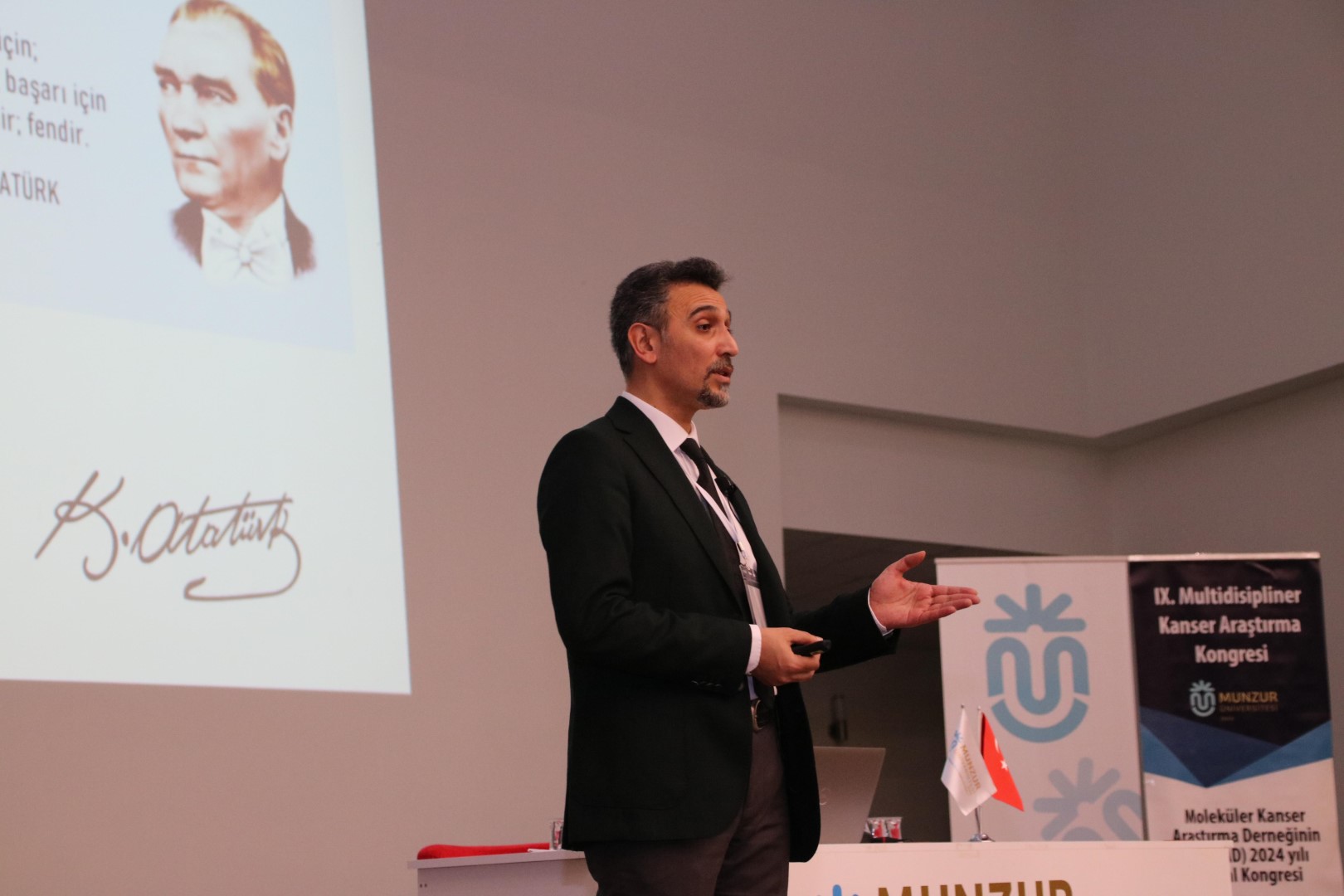 Rektörümüz Prof. Dr. Kenan PEKER, yaptığı açılış konuşmasında IX. Multidisipliner Kanser Araştırma Kongresi'nin Munzur Üniversitesinde düzenlenmesinden memnuniyet duyduğunu belirterek, sürdürülebilirliğin başkenti olan Tunceli'de bu alanda yapılan çalışmalara vurgu yaparak bir kanser araştırma laboratuvarı kurulabileceğini belirtti. Ayrıca, multidisipliner kanser araştırmalarının farklı bilimsel alanları kapsadığını ve ancak bu disiplinlerin iş birliğiyle önemli ilerlemeler kaydedileceğini ifade etti.