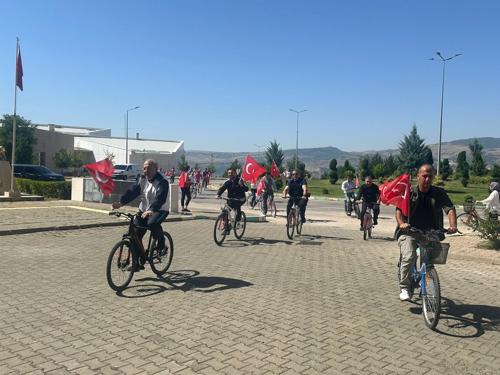 Albayraklarla süslü bisikletlerle üniversite turu yapan katılımcılar 15 Temmuz ruhunu coşkuyla yâd etti.
