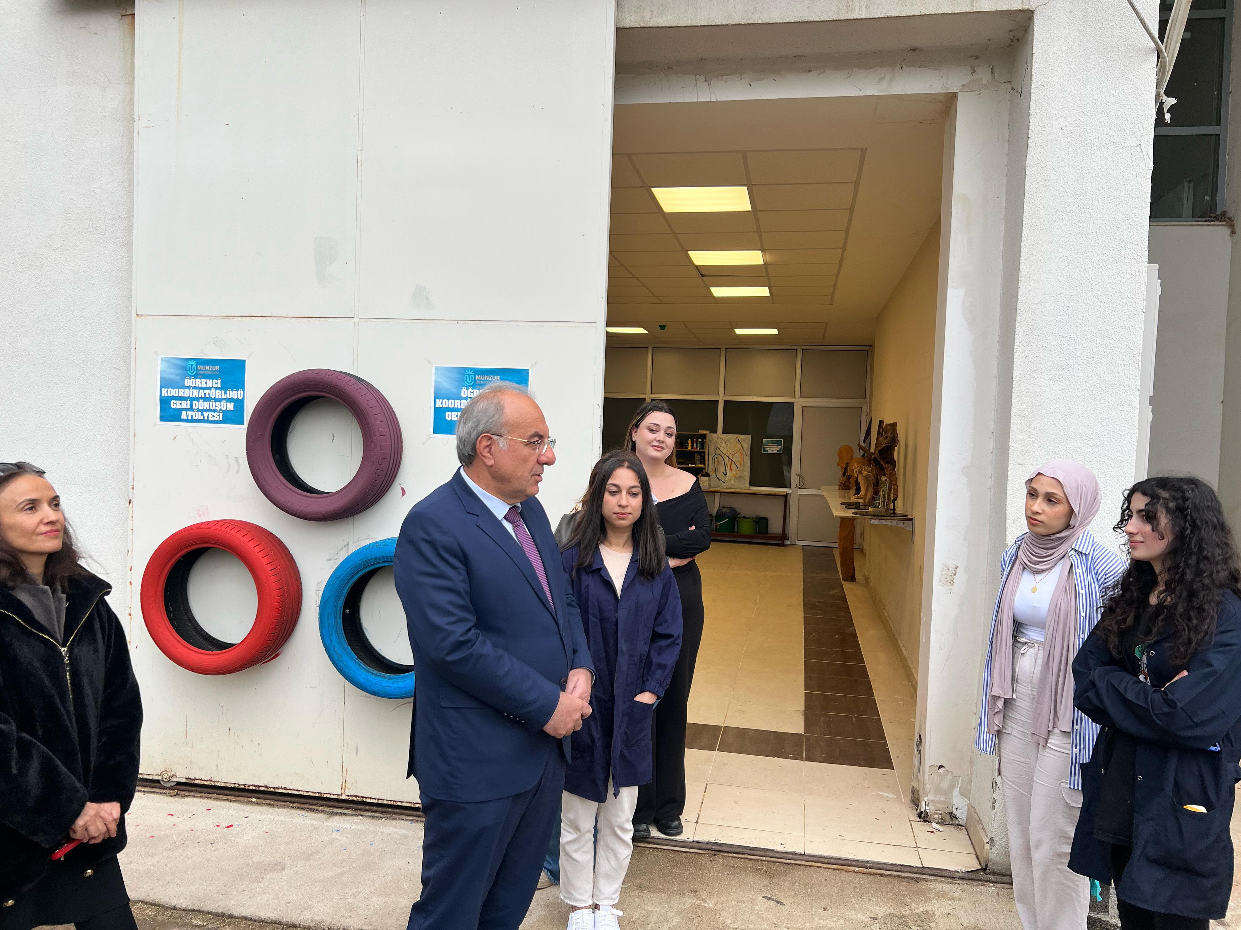 Rektörümüz Prof. Dr. Kenan PEKER; atık malzemelerini geri dönüştürmek amacıyla kurulan Geri Dönüşüm Atölyesini ziyaret etti ve 30 Mart Uluslararası Sıfır Atık Günü vesilesiyle yapılan çalışmalar hakkında bilgi aldı ve öğrenciler ile konuştu. Munzur Üniversite’sinin farklı bölümlerinden 21 öğrencinin istihdam edildiği Geri Dönüşüm Atölyesinde; atık, sunta, ahşap ve mdflerden geri dönüşüm sağlanmaktadır. Geri dönüşümü sağlanan eşya ve değişik objeler hediyelik olarak satış ofisinde müşterisiyle buluşturulup satılırken, Mobilya ve Tasarım Atölyesindeki geri dönüşüm ürünleri ise Üniversite’nin değişik birimlerinin hizmetine sunulmaktadır.