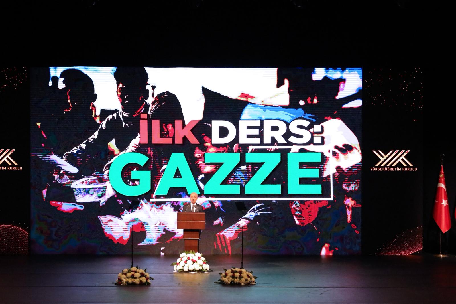 YÖK 2025-2026 Akademik Yılı Açılış Töreni'nde açıklanan; Dünya'nın her yerinde üniversitelerimizin olması hedefi birlikte bereket, büyük millet ve güçlü devletle her yerde adalet demektir. Uluslararası Türk Devletleri Üniversitesi’nin açılmış olması, her ilde en az bir OSB MYO kurulması girişimi, öğrencilerin öğrenme süreçlerine katılmaları, Türkiye’nin uluslararası öğrencilere kapılarını açık tutma kararlılığı, bölgesel bir eğitim merkezi haline gelmiş olmamız, Şam’da kurulmakta olan ‘Türkiye–Suriye Dostluk Üniversitesi ve Gazze’de yaşanan insani dramın sona erdirilmesinde gelinen aşamanın tüm insanlığa hayırlı olmasını dileriz.