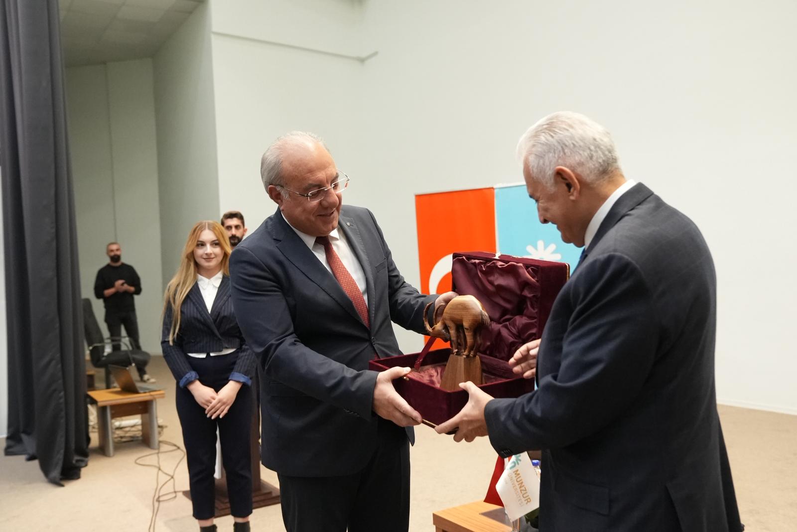 Munzur Üniversitesi, Türkiye Cumhuriyeti’nin son Başbakanı ve Türk Devletleri Teşkilatı Aksakallılar Heyeti Başkanı Binali YILDIRIM’ı ağırladı. Kongre ve Kültür Merkezi’nde düzenlenen “Gençlerle Söyleşi” programında Sayın Binali YILDIRIM, öğrencilerle bir araya gelerek tecrübelerini, ülke gündemine ilişkin değerlendirmelerini ve gençlere yönelik tavsiyelerini aktardı. Aynı zamanda Sayın Binali YILDIRIM, öğrencilerimizin sorularını da yanıtlayarak değerli tecrübelerini ve görüşlerini de paylaştı.