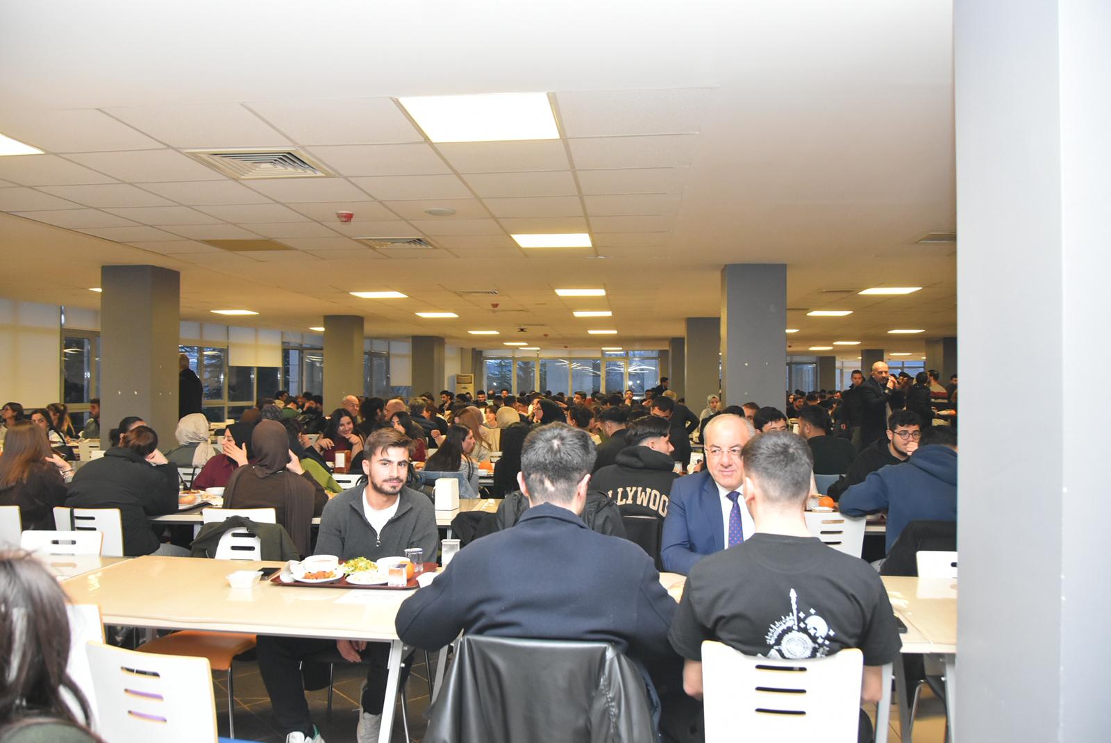 Ramazan ayının manevi ikliminde gerçekleştirilen programda Rektörümüz Prof. Dr. Kenan PEKER, öğrenciler ile sohbet ederek görüş ve taleplerini dinledi; üniversitemizde hâkim olan birlik, beraberlik ve dayanışma kültürünün önemine vurgu yaptı.