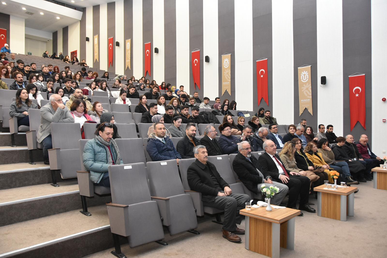 Munzur Üniversitesi Alevilik Uygulama ve Araştırma Merkezi tarafından “Dilde Hızır, Deyişte Hızır” adlı bir etkinlik Üniversitemizin Kongre Kültür Merkezinde yapıldı. Etkinliğe Rektörümüz Prof. Dr. Kenan PEKER, rektör yardımcıları, dekanlar, öğretim üyeleri, öğrenciler ve kanaat önderleri katılım sağladı. Rektörümüz Prof. Dr. Kenan PEKER, günün anlamı ve önemi ile ilgili bir konuşma yaptı. Akabinde Alevilik Uygulama ve Araştırma Merkezi müdürü Doç. Dr. Aziz ALTI ve müdür yardımcısı Öğr. Gör. Seval PERK, Hızır ayı, orucu ve bu özel günlerde görülen rüyalar ile ilgili değerli bilgiler paylaştılar. Etkinlik, Alevilik Uygulama ve Araştırma Merkezi Müdür Yardımcısı Dr. Öğr. Üyesi Hüseyin KARA, Arş. Gör. Dr. Erkan MENGÜŞ, Öğretmen Burhan SATUN ve Öğretmen Dr. Mehmet KAYA’nın icra ettiği deyişler dinletisiyle sona erdi.