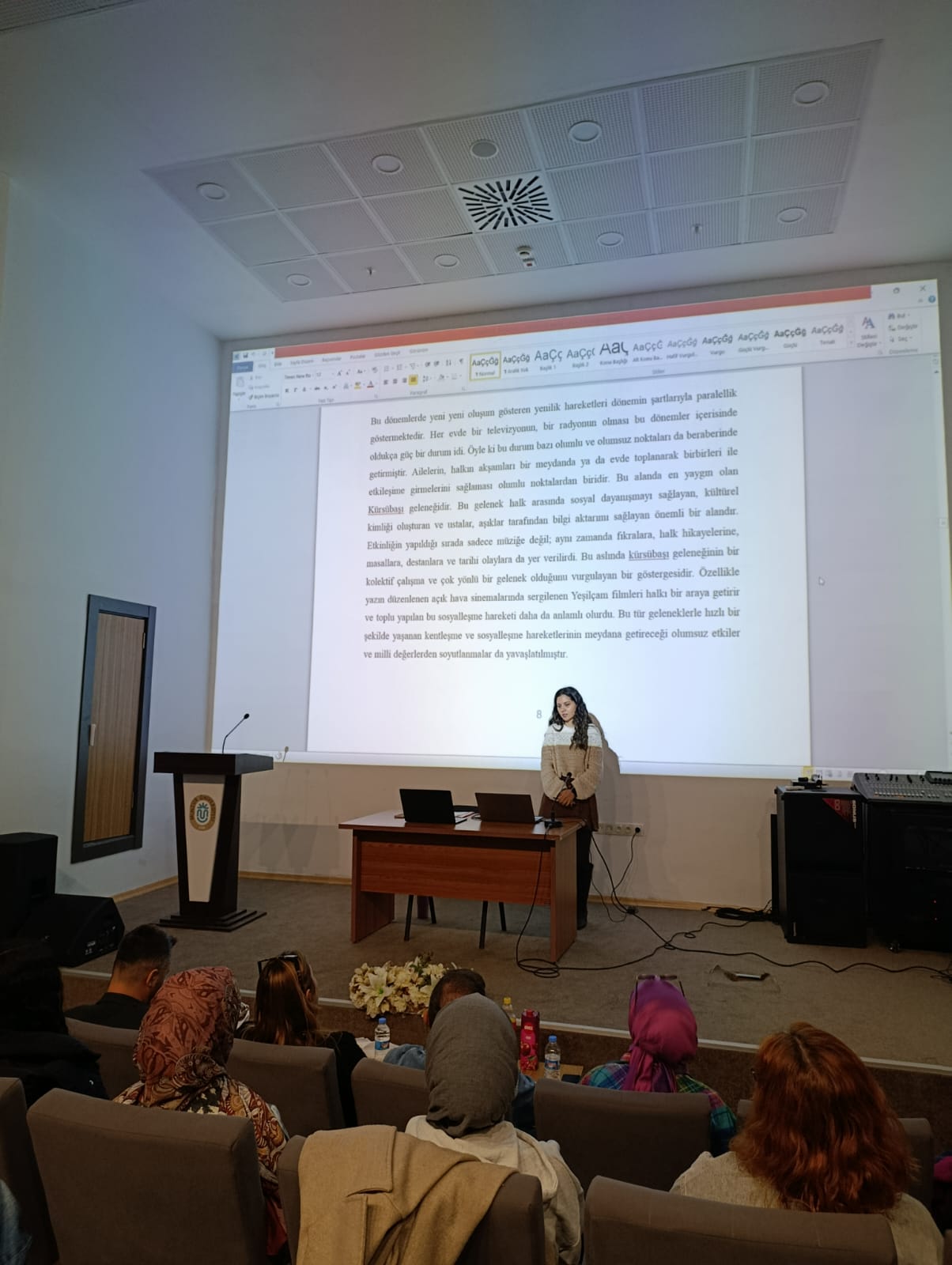 Türk Dili ve Edebiyatı Anabilim Dalı kapsamında yürütülen yüksek lisans seminer dersi çerçevesinde öğrencilerimiz, dönem boyunca hazırladıkları akademik sunumlarını başarıyla gerçekleştirmiştir. Alanlarına ilişkin özgün konu başlıkları etrafında hazırlanan sunumlarda öğrenciler; literatür taraması yapma, akademik metinleri çözümleme, eleştirel düşünme ve bilimsel sunum becerilerini etkili bir biçimde ortaya koymuştur.