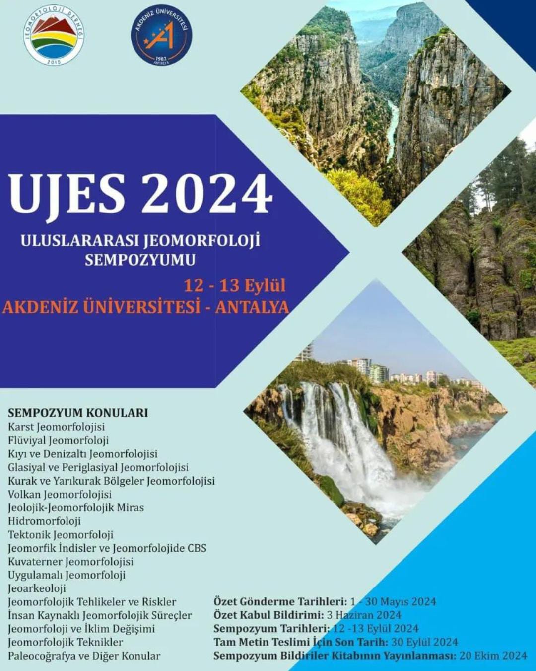 UJES 2024 ULUSLARARASI JEOMORFOLOJİ SEMPOZYUMU - 12-13 EYLÜL AKDENİZ ÜNİVERSİTESİ - ANTALYA