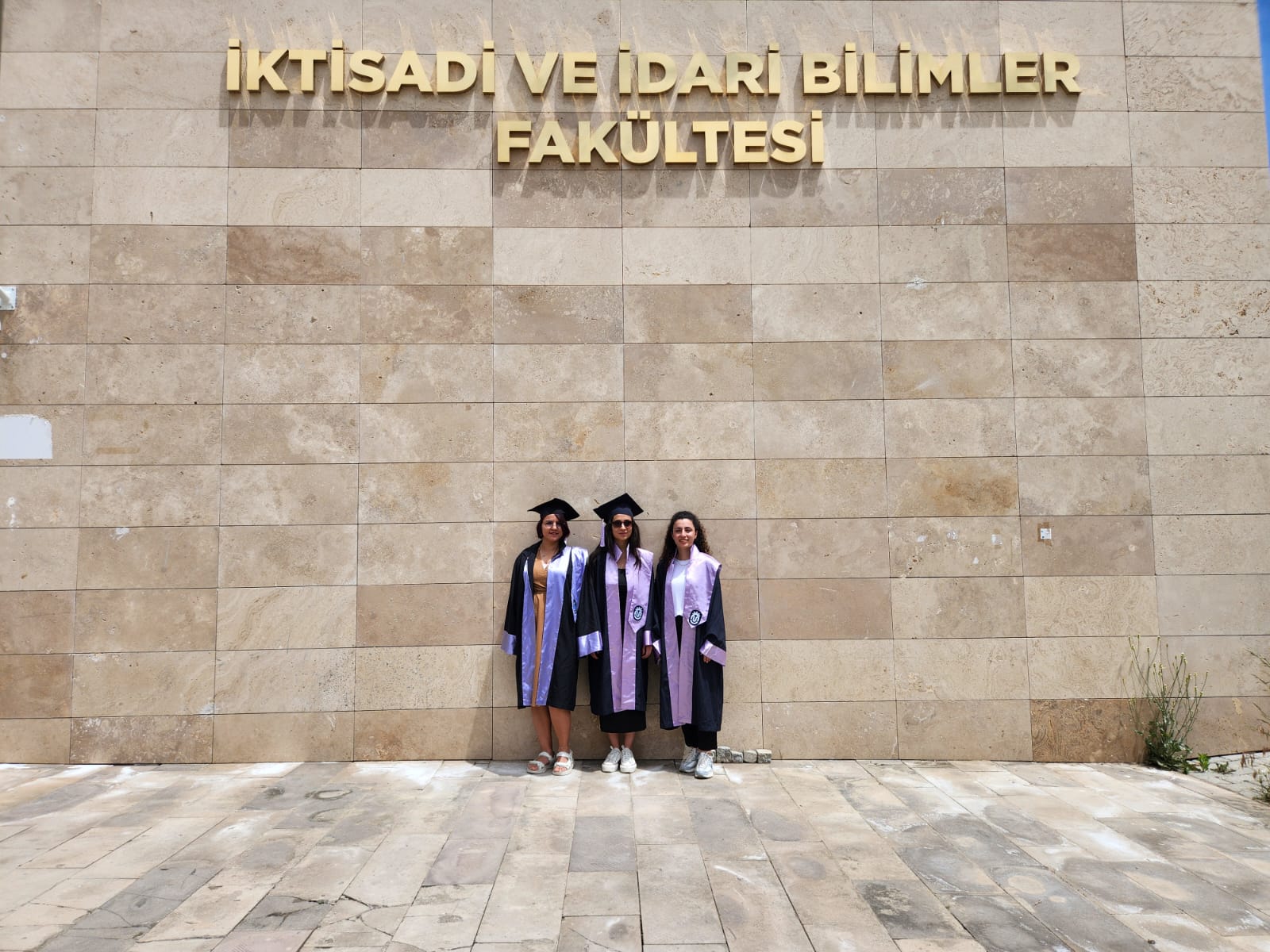 Fakülte birincimiz ve üniversite üçüncümüz Siyaset Bilimi ve Kamu Yönetimi Bölümü öğrencisi Emine Denktaş Duman, fakülte ikincimiz Siyaset Bilimi ve Kamu Yönetimi Bölümü öğrencisi Hilal Karaoğlan ve fakülte üçüncümüz Finans ve Bankacılık Bölümü öğrencisi Dilan Değer'i tebrik ederiz.