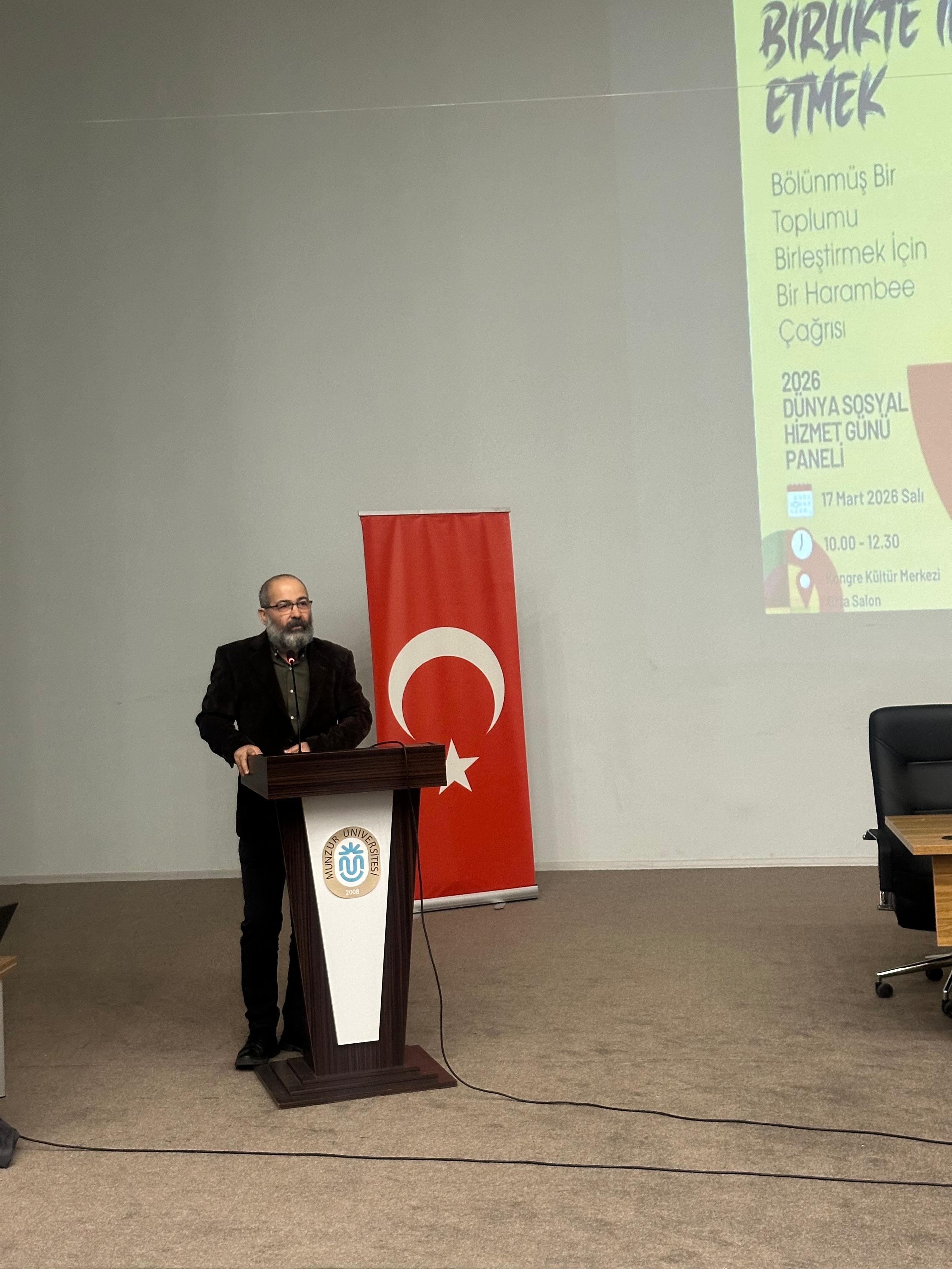 Munzur Üniversitesi Sağlık Bilimleri Fakültesi olarak; "Umut ve Uyumu Birlikte İnşa Etmek: Bölünmüş Bir Toplumu Birleştirmek İçin Bir Harambee Çağrısı" temasıyla düzenlediğimiz Dünya Sosyal Hizmet Günü panelimizde, şehrimizin değerli paydaş kurumlarını akademik bir vizyon ve ortak bir hedef etrafında 17 Mart 2026 Salı günü üniversitemiz Kongre ve Kültür Merkezi’nde “Dünya Sosyal Hizmet Günü 2026” panelini gerçekleştirdik.