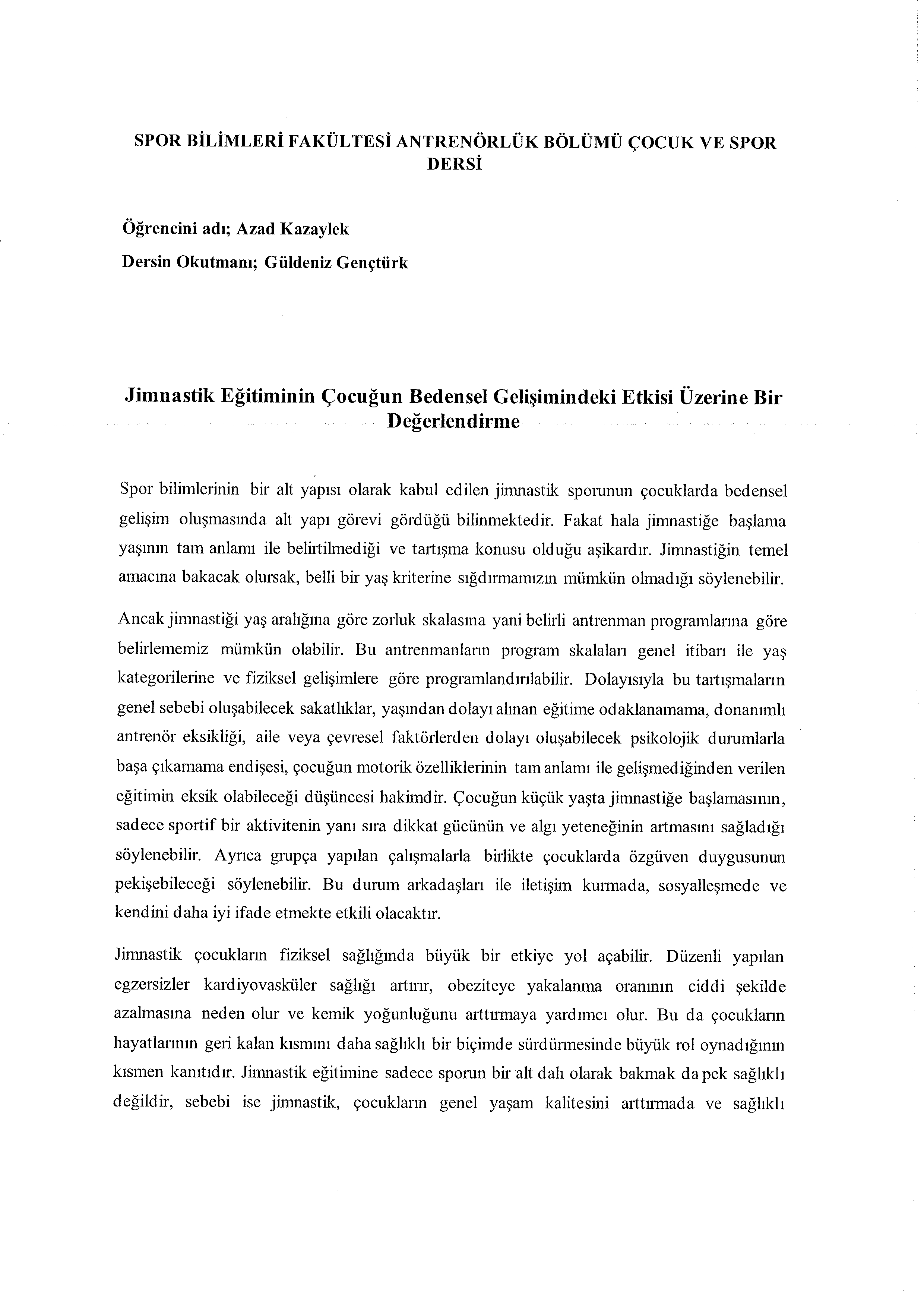 Fakültemiz öğrencilerinden Azad KAZAYLEK, Melike ÖZTEMEL, Şeyma ÖZLÜK, Mahsum KILIÇ ve Piruz EFE'ye spor bilimleri temel alanıyla ilgili yazdıkları kompozisyonlarından dolayı teşekkür ederiz.