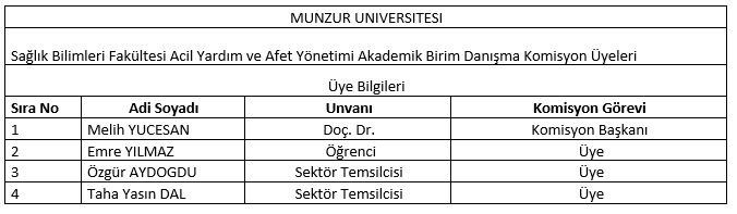 Akademik Birim Danışma Komisyonu Üyeleri |