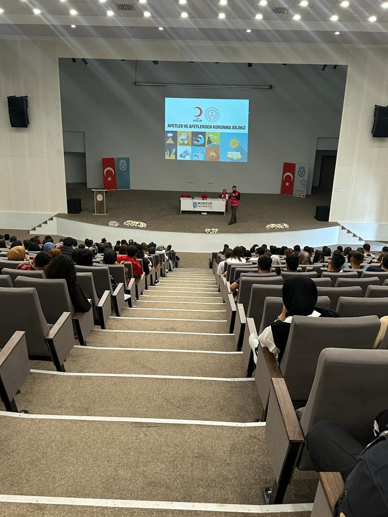 Türkiye Kızılay Derneği Afet Yönetimi ve İklim Değişikliği Genel Müdürlüğü üniversitemiz kongre ve kültür merkezinde 24 Ekim Salı günü saat 09.30’da toplumun afetlere karşı direncini artırmak, Türkiye afet yönetim sistemi hakkında bilgilendirme yapmak, afet kültürü oluşturmak amacıyla “Afet Eğitimi” etkinliğini gerçekleştirmiştir.