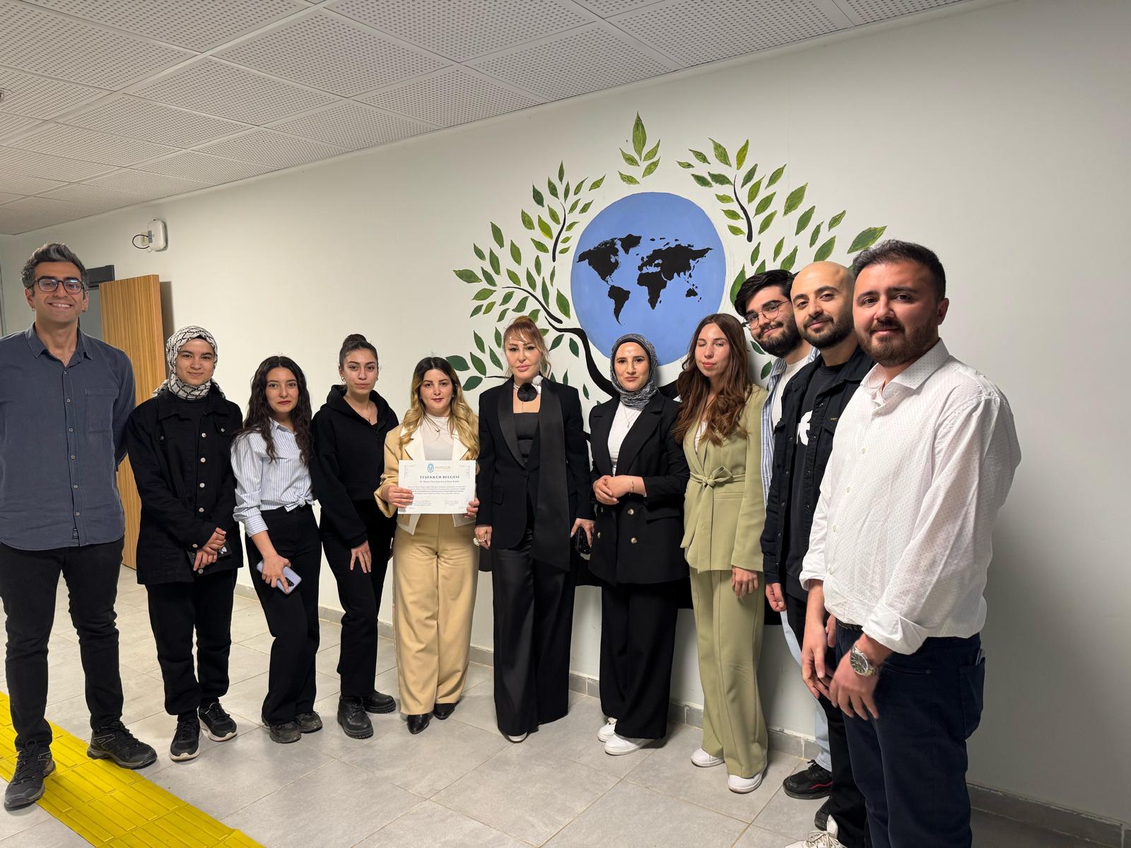 After the event, our esteemed dean, Prof. Dr. Ülkü ÖZBEY, welcomed the Social Work Society which is part of our department, to her office and presented the club with a certificate of appreciation for their contribution to the event and took a commemorative photo with them.