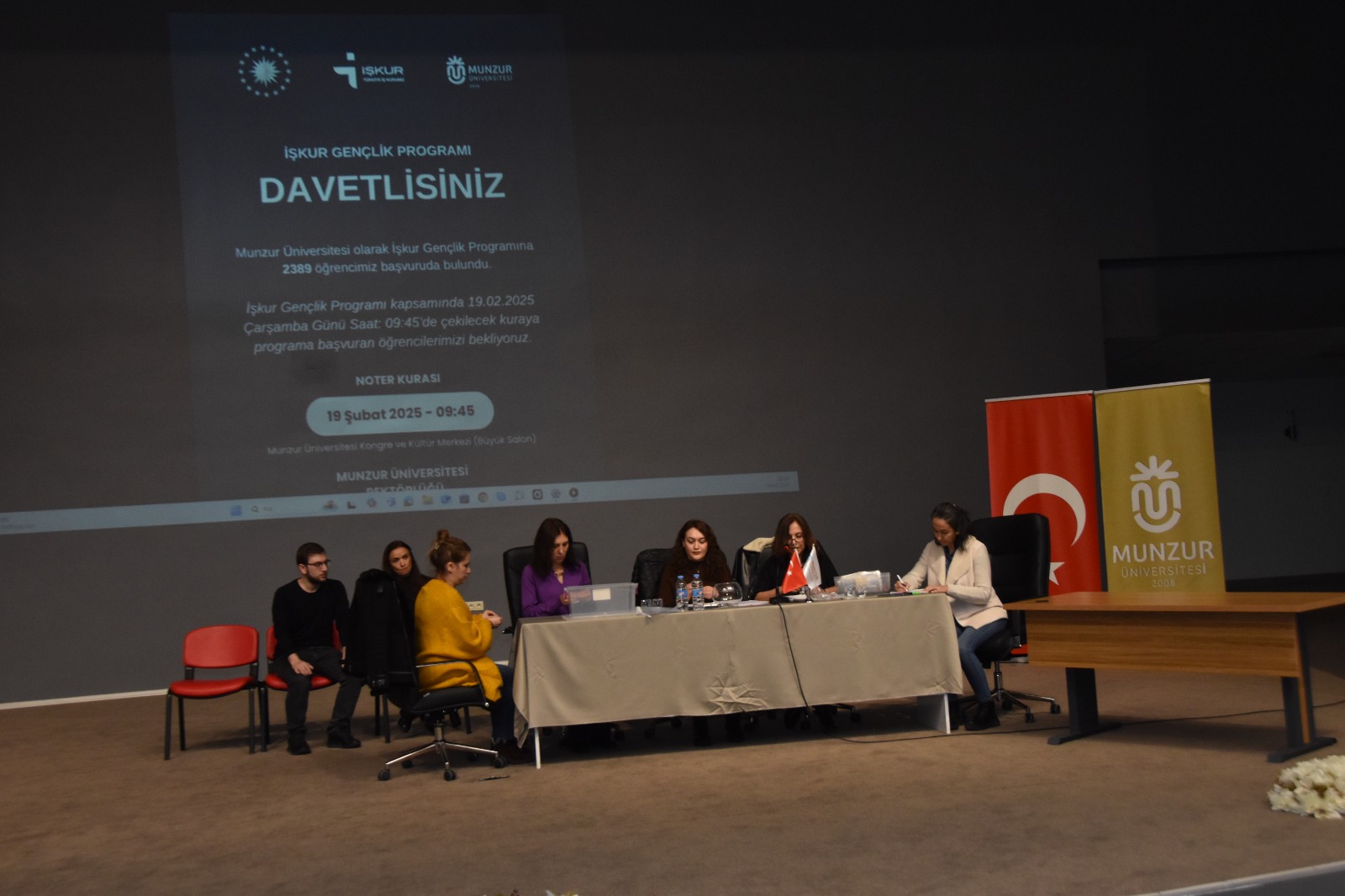 İşkur Gençlik Programı kapsamında 3 Mart-30 Haziran tarihleri arasında istihdam edilecek 280 öğrenci 19 Şubat Saat: 10.00'da üniversitemiz kongre merkezi büyük salonda gerçekleştirilen noter kurasıyla belirlenmiştir. Kura töreninde konuşan Rektörümüz Prof. Dr. Kenan PEKER, "Sayın Cumhurbaşkanımızın himayelerinde başlatılan İŞKUR Gençlik Programı'nın, öğrencilerimizin teorik bilgilerini pratikle birleştirmelerini hedeflediğini, program kapsamında öğrencilerimizin üniversitemizin çeşitli birimlerinde görev alarak hem mesleki deneyim kazanacağını hem de sosyal güvenlik kapsamında ücretlendirileceklerini" belirtmiştir.