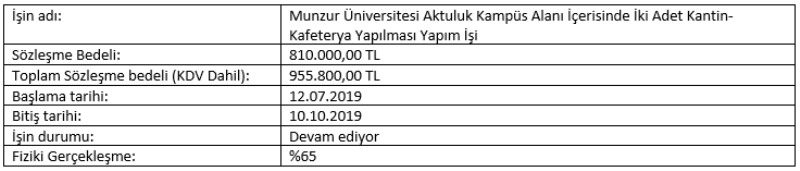 Munzur Üniversitesi Aktuluk Kampüs Alanı İçerisinde İki Adet Kantin-Kafeterya Yapılması Yapım İşi