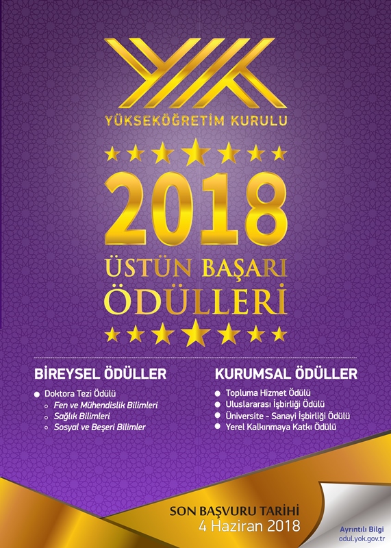 Yeni YÖK olarak geçen yıl uygulamaya koyduğumuz YÖK Üstün Başarı Ödülleri’nin 2018 yılı için başvuru süreci başlamıştır.