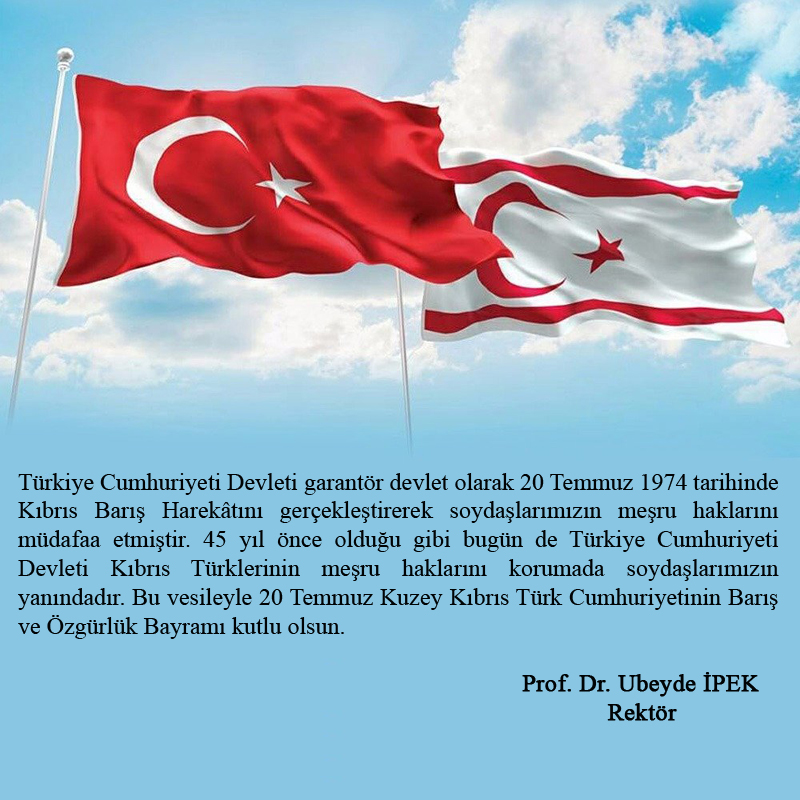 Rektör İpek'ten 20 Temmuz Kuzey Kıbrıs Türk Cumhuriyetinin Barış ve Özgürlük Bayramı Mesajı