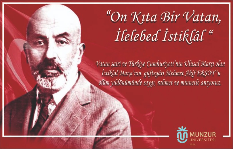 Dünyada İstiklâl Marşı yazan şairler içinde; hem milletinin var olma mücadelesine katılmış bir kahraman, hem milletinin dilini bu kadar iyi kullanan bir yazar hem büyük bir entelektüel, çağının tanığı ve vicdanı olan bir aydın, hem toplumunun değerlerini ve kişisel ahlakını sağlam bir ilkeyle kendi şahsında bütünlemiş bir ahlak adamı, hem İstiklâl Marşı’nı arzu ve talep eden Meclis’in üyesi bir milletvekili hem de İstiklâl Marşı'nı yazmadan önce de ülkesinin büyük bir şairi olarak tanınan ve bütün bu özellikleri kendi şahsında toplamış başka biri yoktur. Gerek yazdığı şiirlerle (Çanakkale Şehitlerine, İstiklâl Marşı), gerekse verdiği vaazlarla Milli Mücadele Dönemi’nin kilit şahsiyetlerinden biri olan, Safahat adlı eserine koymama nedeni sorulduğunda “O benim değil milletimindir” diyen, son günlerinde hasta yatağında, “Allah bu millete bir daha İstiklâl Marşı yazdırmasın” temennisiyle Devletimizin ebediyetini veciz şekilde dile getiren Milli Şairimiz Mehmet Âkif Ersoy’u vefatının 84. yıldönümünde saygı ve rahmetle anıyoruz.” ifadelerine yer verdi.