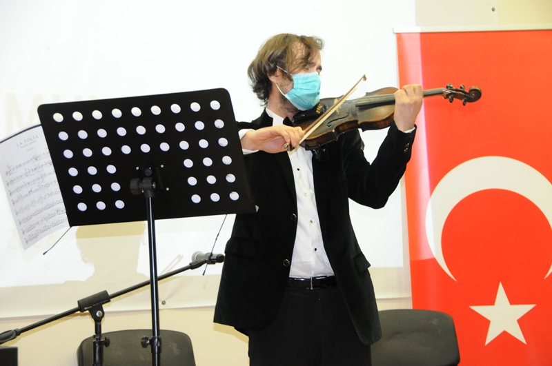Üniversitemiz Prof. Dr. Fuat Sezgin Konferans Salonu’nda 2 Mart 2021 Salı günü gerçekleştirilen etkinliğimizde Güzel Sanatlar, Tasarım ve Mimarlık Fakültesi’nden Arş. Gör. Dr. Uğur Çit, Arş. Gör. Erkan Mengüş, Arş. Gör. Hüseyin Kara ve Öğr. Gör. Natalia Djalilova sahne aldı. Koronavirüs tedbirleri kapsamında seyircisiz/dinleyicisiz olarak gerçekleştirilen canlı yayın müzik dinletimiz müzikseverler için Üniversitemiz resmi instagram hesabından yayınlandı. Yaklaşık bir buçuk saat süren etkinliğimizde öğretim elemanlarımız tarafından ‘Klasik Batı Müziği, Türk Halk Müziği Eserleri ve Deyişler’ icra edildi.