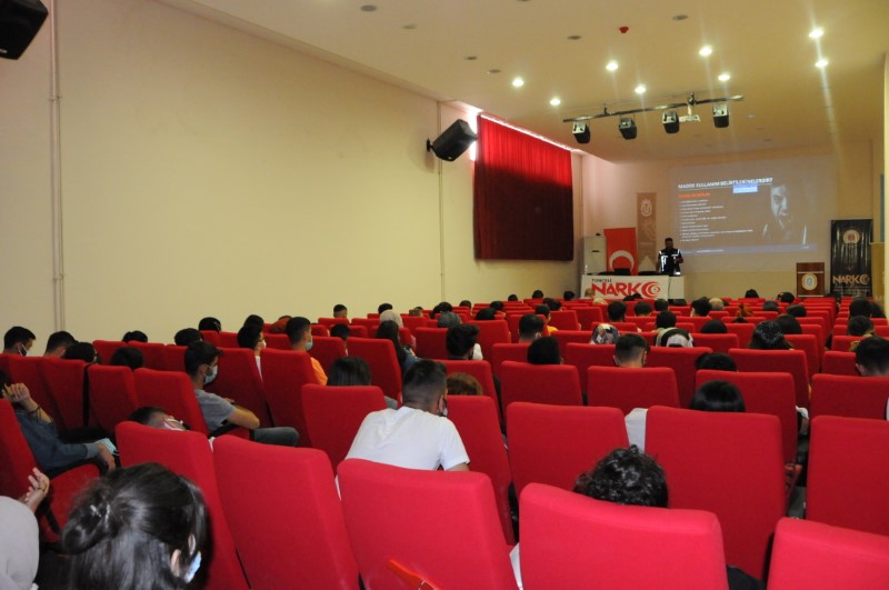 23 Eylül - 1 Ekim 2021 tarihleri arasında Prof. Dr. Fuat Sezgin Konferans Salonunda gerçekleştirilen etkinlikle öğrencilerimize uyuşturucu madde kullanımının önlenmesi, zararları, madde kullanımının belirtileri ve bağımlılığın aşamaları hakkında detaylı bilgi verildi. Verilen eğitimde uyuşturucu maddelere karşı bilinçli olmanın; özellikle anne ve babaların bu konuda bilgi sahibi olmasının çok önemli olduğuna dikkat çekildi. Gençlerimizin birer anne baba adayı olmaları nedeniyle bu konuda bilinçli olmalarının uyuşturucu madde kullanımının önlenmesinde ve gelecekte daha sağlıklı bir nesil yetiştirilmesinde en etkili yöntem olduğuna vurgu yapıldı.