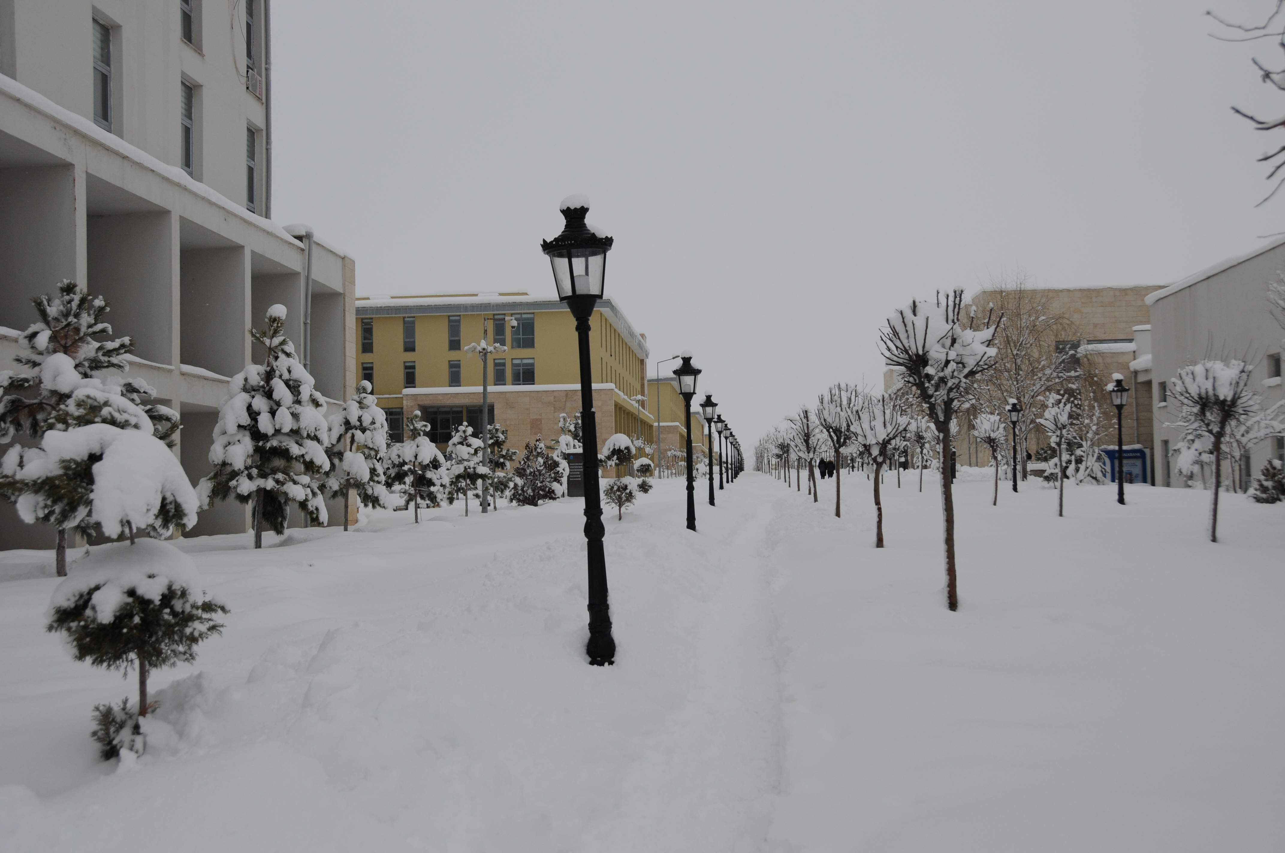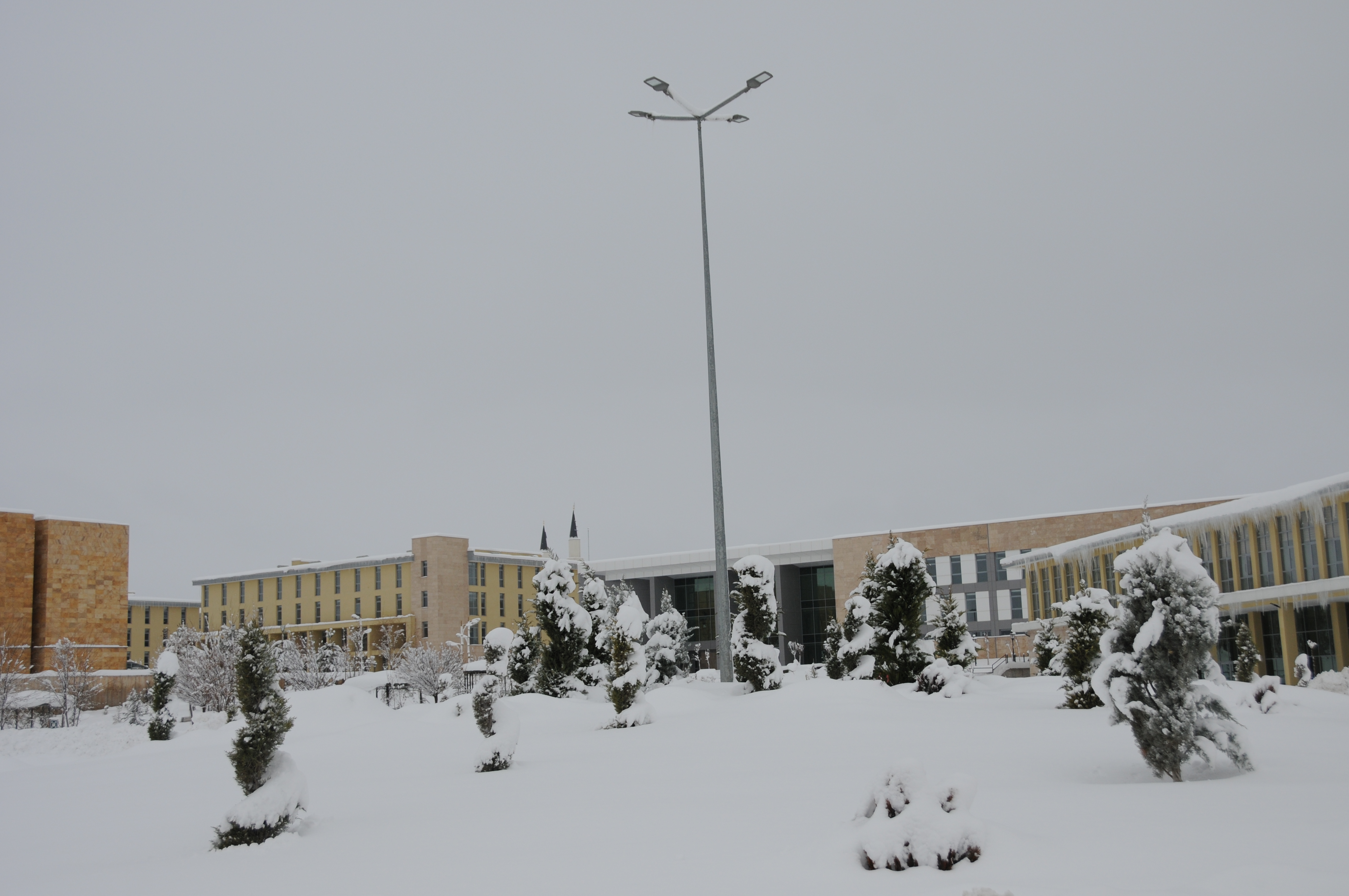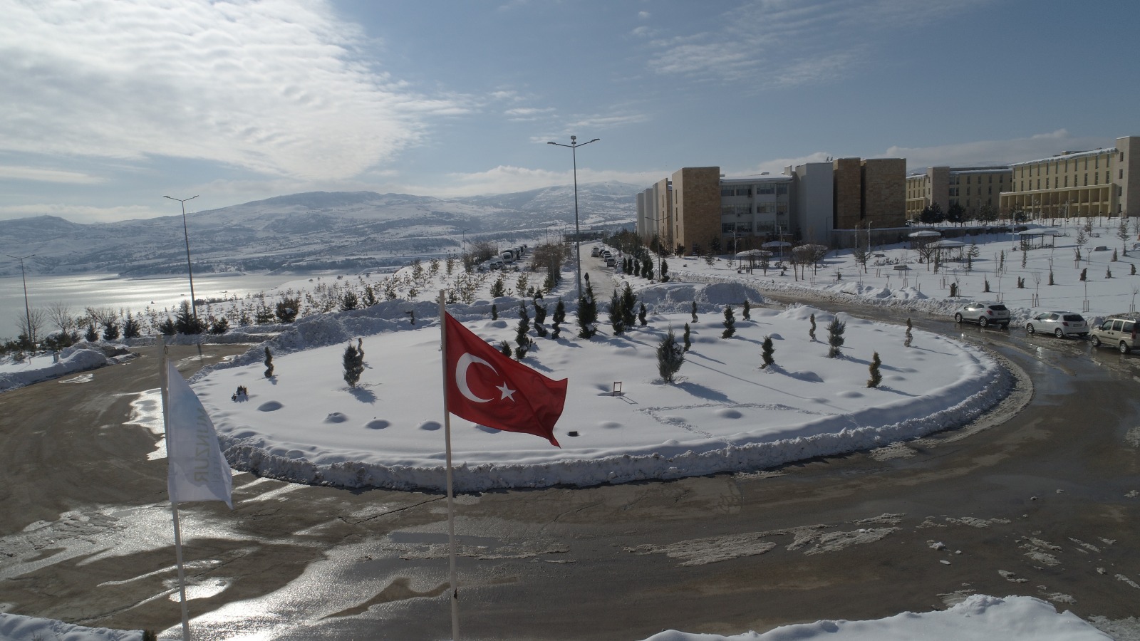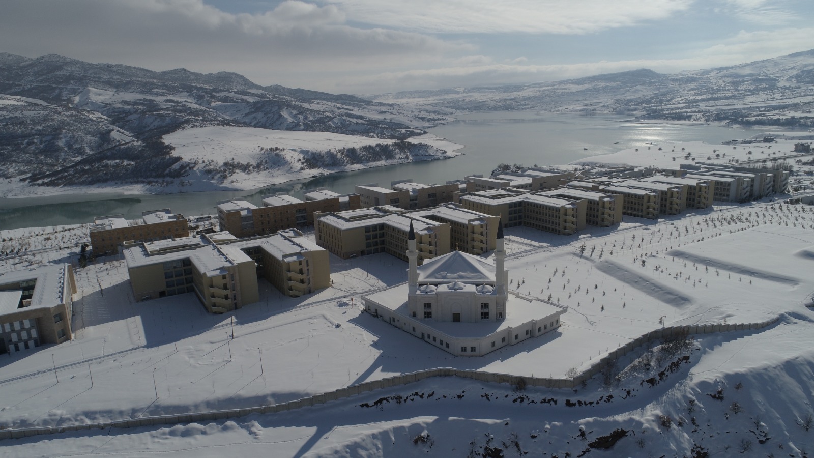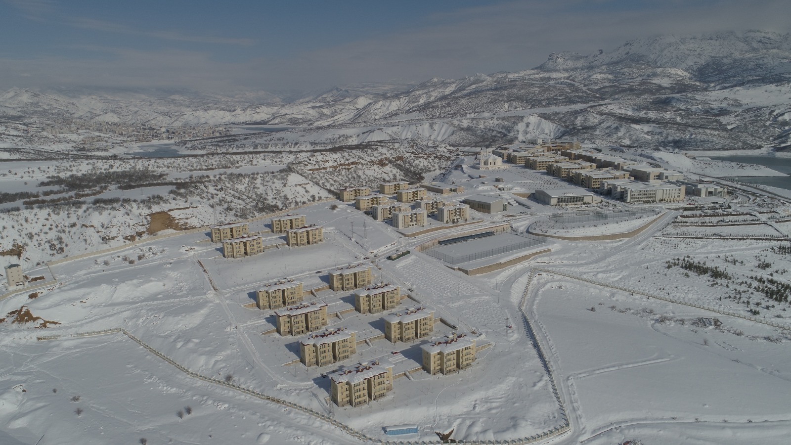 Eşsiz baraj manzarasına sahip Aktuluk Kampüsümüz, bölgemizde yaklaşık iki haftadan beri devam eden yoğun kar yağışı ile birlikte beyaza büründü. Kar yağışı nedeniyle zaman zaman güçlüklerin yaşandığı kampüsümüzde personellerimiz bir yandan karın tadını çıkarırken diğer yandan ulaşımın aksamaması için çalışmalar özveriyle sürdürülüyor. Bu kış, ziyaretçilerine seyir zevki sunmaya devam eden baraj manzaralı kampüsümüz, tatilde olan öğrencilerimiz için havadan ve değişik açılardan fotoğraflandı.