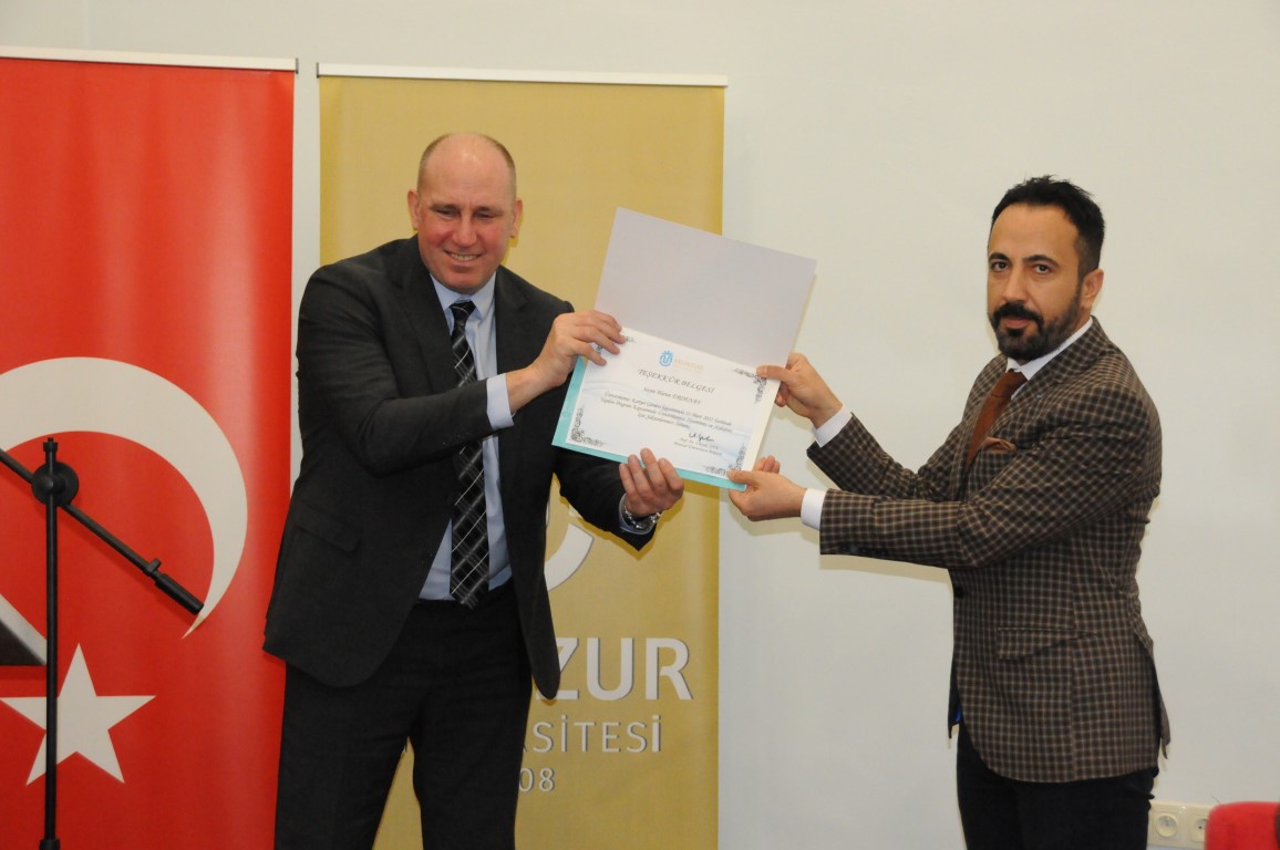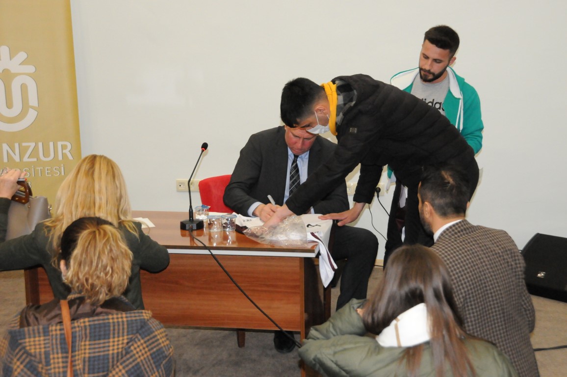 11 Mart 2022 Cuma günü Üniversitemiz Kongre ve Kültür Merkezi’nde gerçekleştirilen söyleşi programına Rektörümüz Prof. Dr. Ubeyde İpek, Rektör Yardımcımız Prof. Dr. Nuran Cıkcıkoğlu Yıldırım, akademik/idari personelimiz ve öğrencilerimiz katıldı. Bir dönem Türkiye Basketbol Federasyonu Başkanlığı görevini de üstlenen Erdenay, yaptığı konuşmada basketbol ve yöneticilik kariyerinde yaşadığı tecrübeleri paylaştı. Harun Erdenay, soru-cevap şeklinde ilerleyen söyleşide öğrencilerimizin basketbol kariyeri ve basketbol ile ilgili merak ettiği soruları cevaplayarak program sonunda öğrencilerimize imzalı forma hediye etti. Rektör İpek tarafından Erdenay’a teşekkür belgesi takdim edilmesinin ardından kapalı spor salonumuzda Spor Bilimleri Fakültesi öğrencilerimizin düzenlediği gösteri maçı gerçekleştirildi. Rektörümüz Prof. Dr. Ubeyde İpek, maç sonunda personelimiz ve öğrencilerimizle hatıra fotoğrafı çektiren Harun Erdenay’a nazik ziyaretleri için teşekkür etti.
