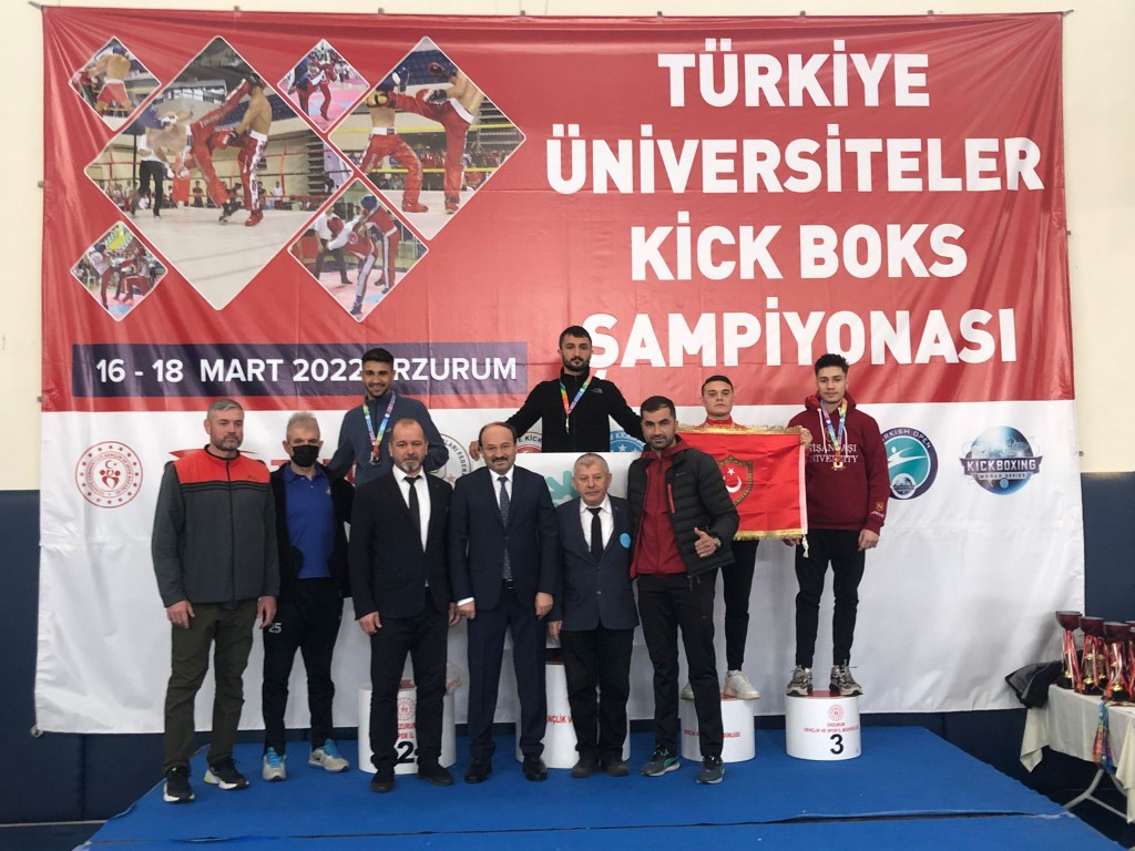 Türkiye Üniversite Sporları Federasyonu ve Türkiye Kick Boks Federasyonu tarafından 16-18 Mart 2022 tarihleri arasında Erzurum Teknik Üniversitesinde düzenlenen Üniversiteler Arası Kick Boks Şampiyonası’na Üniversitemizi temsilen Spor Bilimleri Fakültesi Beden Eğitimi ve Spor Öğretmenliği 2. Sınıf öğrencisi Musa Tan katıldı. Müsabakalarda büyük bir başarı göstererek rakiplerini eleyen öğrencimiz final maçını da kazanarak şampiyon oldu. Kazandığı başarıyla bizleri gururlandıran değerli öğrencimiz Musa Tan’ı kutluyor; kendisine eğitim ve spor hayatında başarılar diliyoruz.