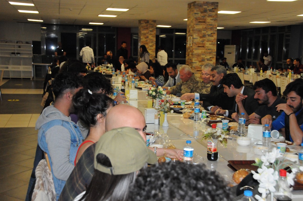 Merkezi yemekhane binamızda 20 Nisan 2022 tarihinde gerçekleşen iftar programına Valimiz Mehmet Ali Özkan, Jandarma Bölge Komutanımız Tuğg. Nurettin Alkan, Rektörümüz Prof. Dr. Ubeyde İpek, il protokolü, öğretim elemanlarımız ve öğrencilerimiz katıldı. Programda öğrencilerimizle sohbet eden Vali Özkan ve Rektör İpek, özellikle öğrencilerimiz konusunda duyarlılık göstererek iftar yemeği veren vatandaşımıza teşekkürlerini iletti.