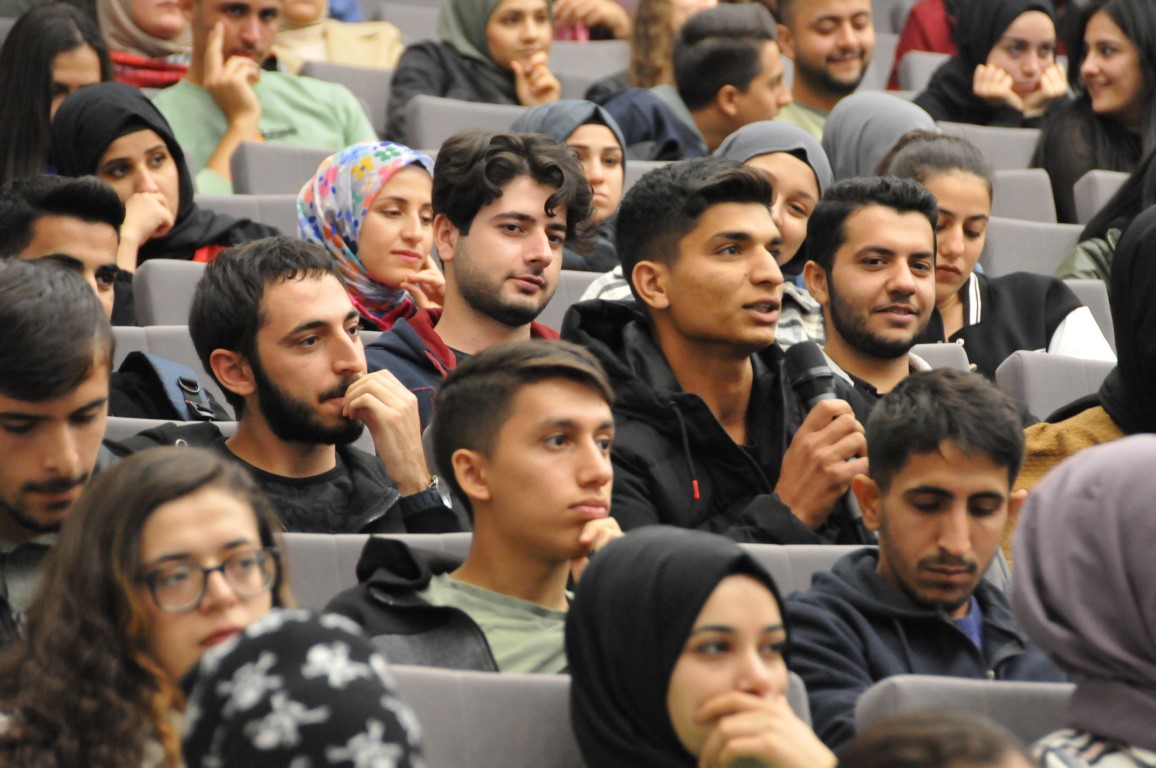 Üniversitemiz Kongre ve Kültür Merkezi’nde 2 Kasım 2022 Çarşamba günü düzenlenen öğrenci buluşmalarının ikincisine Rektörümüz Prof. Dr. Ubeyde İpek, Sağlık Bilimleri Fakültesi Dekanı Prof. Dr. Fethi Yılmaz, bölüm başkanları, akademik personellerimiz ve öğrencilerimiz katıldı. Öğrencilerimize Üniversitemizle ilgili bilgi veren Rektör İpek, sunulan kampüs imkanları, staj uygulamalarında öğrencilerimize sağlanan kolaylıklar, Erasmus, öğrenci kulüpleri gibi birçok konuda açıklamalarda bulunarak öğrencilerimizin sorularını yanıtladı.
