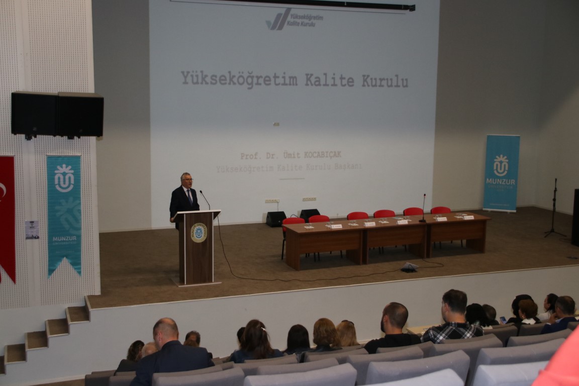 Toplantının ikinci gününde (20 Ekim 2023), konuk Dekan eşleri Ovacık gezisine katılırken, Munzur Üniversitesi Kongre Merkezinde Yükseköğretim Kalite Kurulu (YÖKAK) Başkanı Sayın Prof. Dr. Ümit KOCABIÇAK Üniversite programlarının akreditasyonu sürecinde bilinmesi gereken önemli hususlara değindiği sunumunu gerçekleştirdi. Cumhurbaşkanlığı İletişim Başkanlığı Türkiye Marka Ofisi Koordinatörü Sayın Nur ÖZKAN ERBAY ise üniversitelerin kurumsallaşarak markalaşmasının uluslararası alanda hem üniversite eğitimindeki kalitenin artmasına hem de öğrencilerin dünyadaki akranlarıyla daha yakından entegrasyonuna sağlayacağı katkının önemini vurguladı.