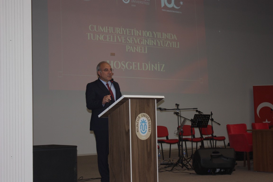 Cumhuriyetimizin 100. yılı etkinlikleri kapsamında 26 Ekim 2023 tarihinde 13.30’da Munzur Üniversitesi Kongre Kültür Merkezi’nde, “Cumhuriyetin 100. Yılında Tunceli ve Sevginin Yüzyılı Paneli” düzenlendi.